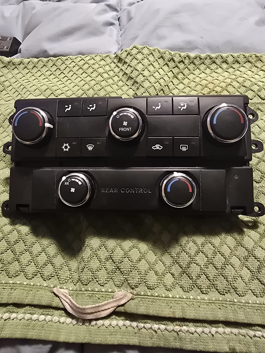 Selling a car climate control panel. It has controls for both front and rear. Please check the photos to see if it's the right fit for your vehicle! Fits a dodge grand caravan.