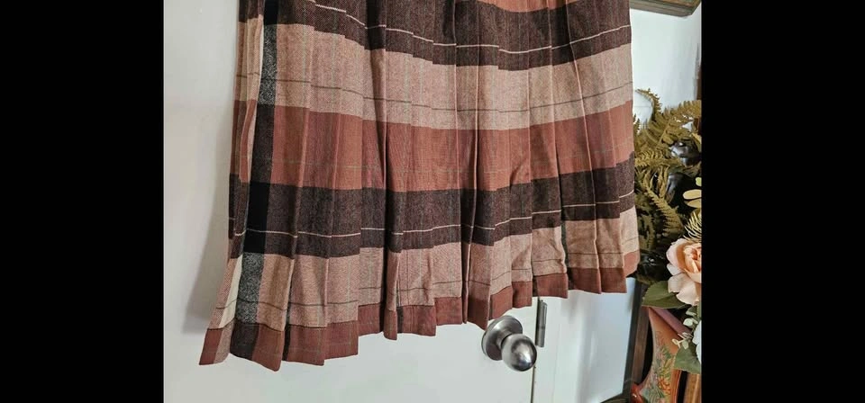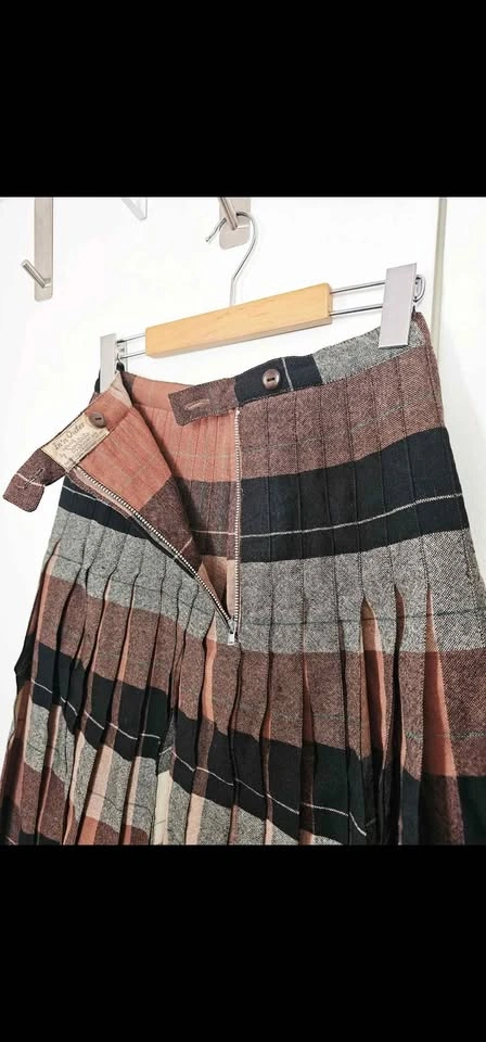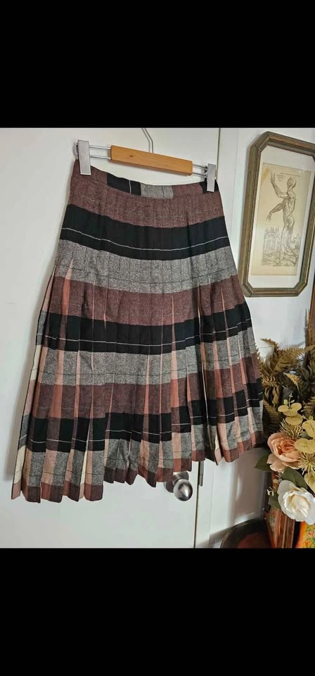 Size 25 Vintage Reversible Wool Plaid 50s 60s Pleated Midi Skirt