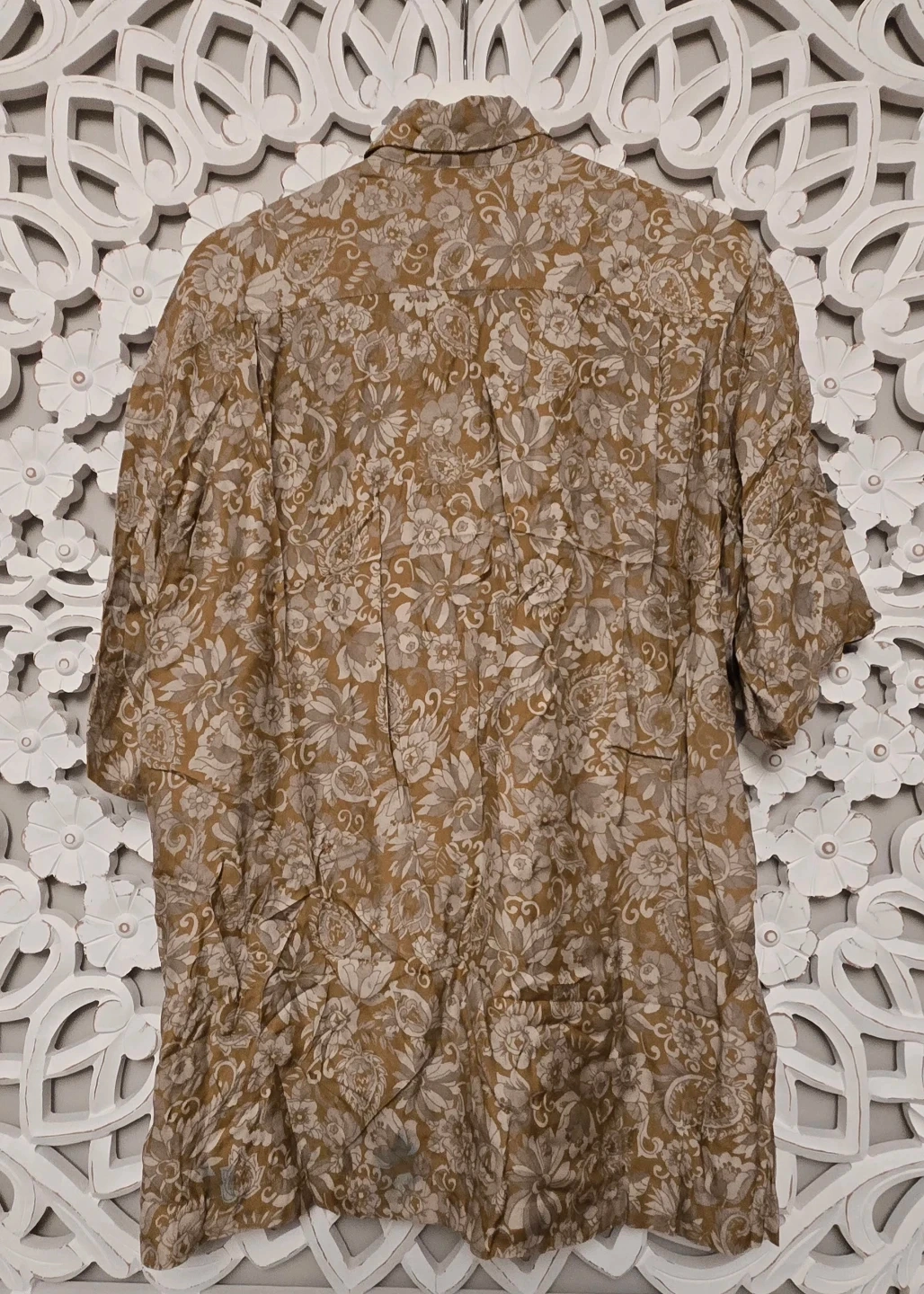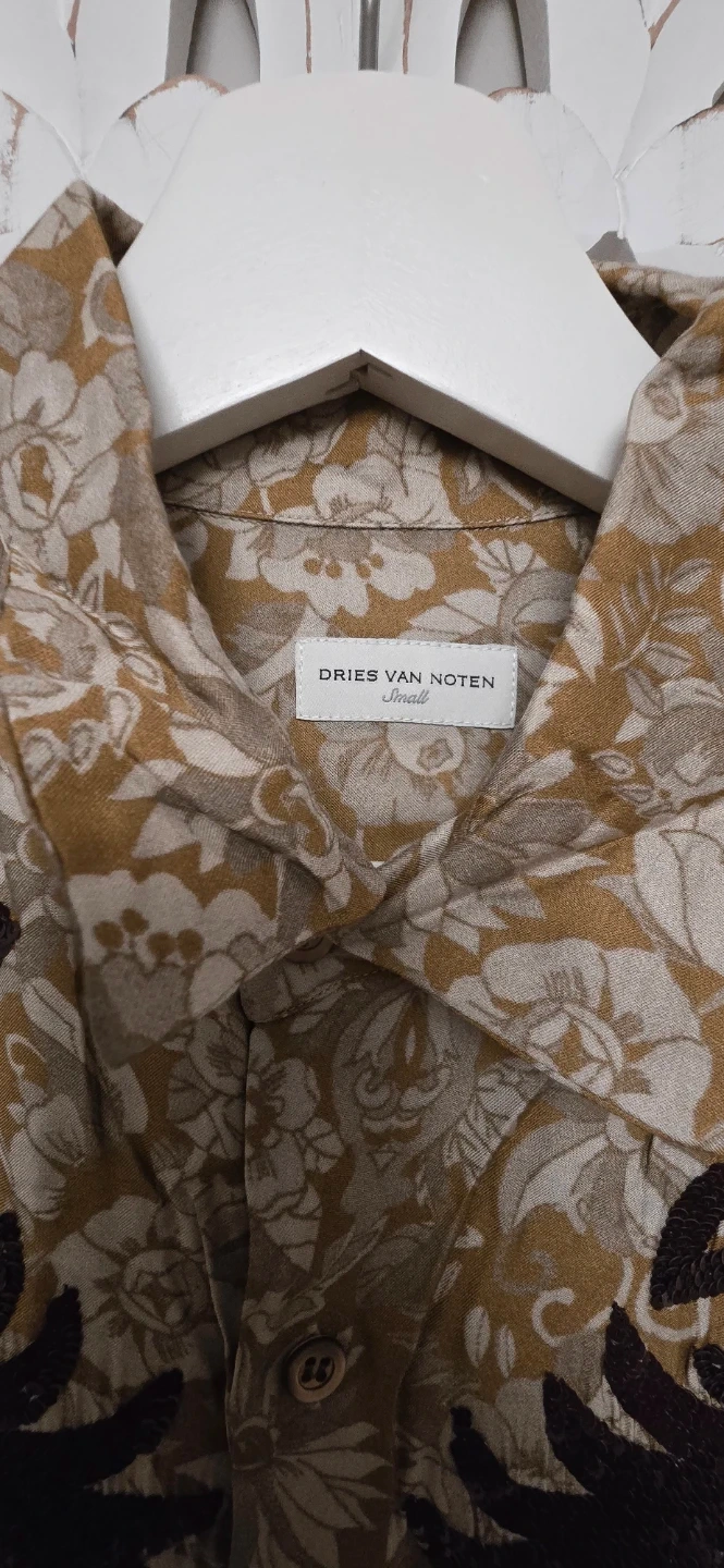 Here's a Dries Van Noten shirt in size small! It features a lovely floral pattern and unique embellishments.