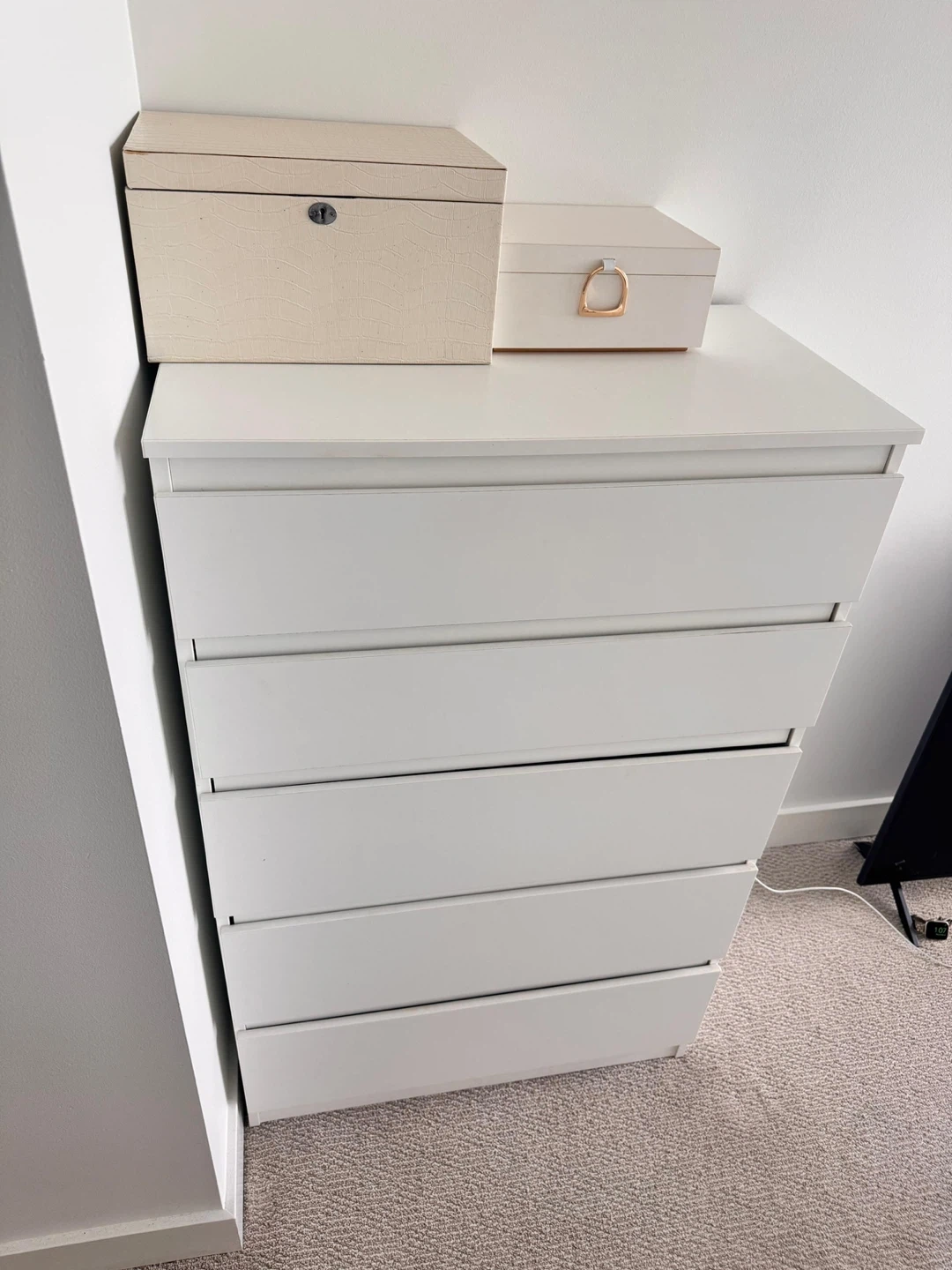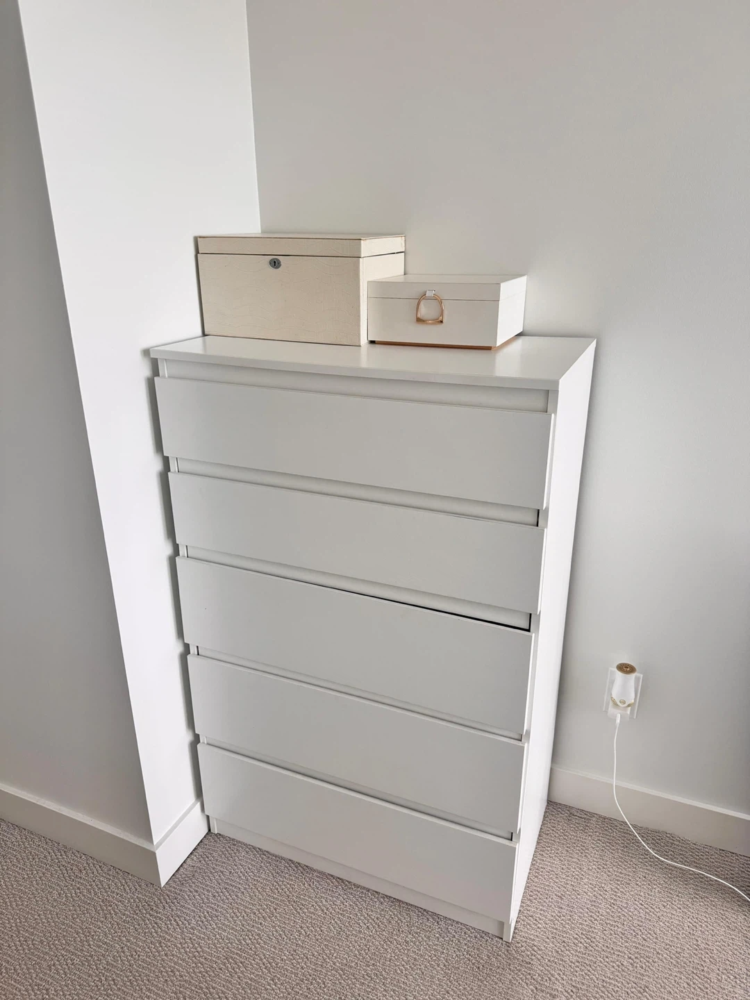 Selling a gently used IKEA Hemnes dresser in white. It features six drawers, perfect for organizing your clothes and other belongings. This dresser is in great condition and ready to find a new home!