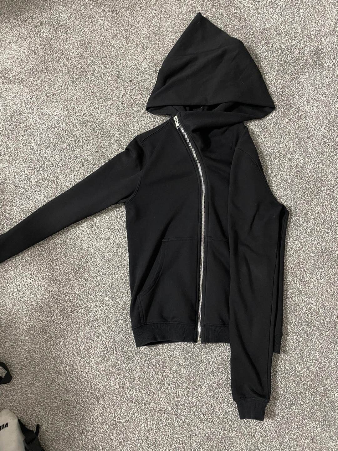 42Selling a Rick Owens DRKSHDW black zip-up hoodie in size M. It's made in Italy and is 100% cotton. A stylish addition to any wardrobe! SEND OFFERS