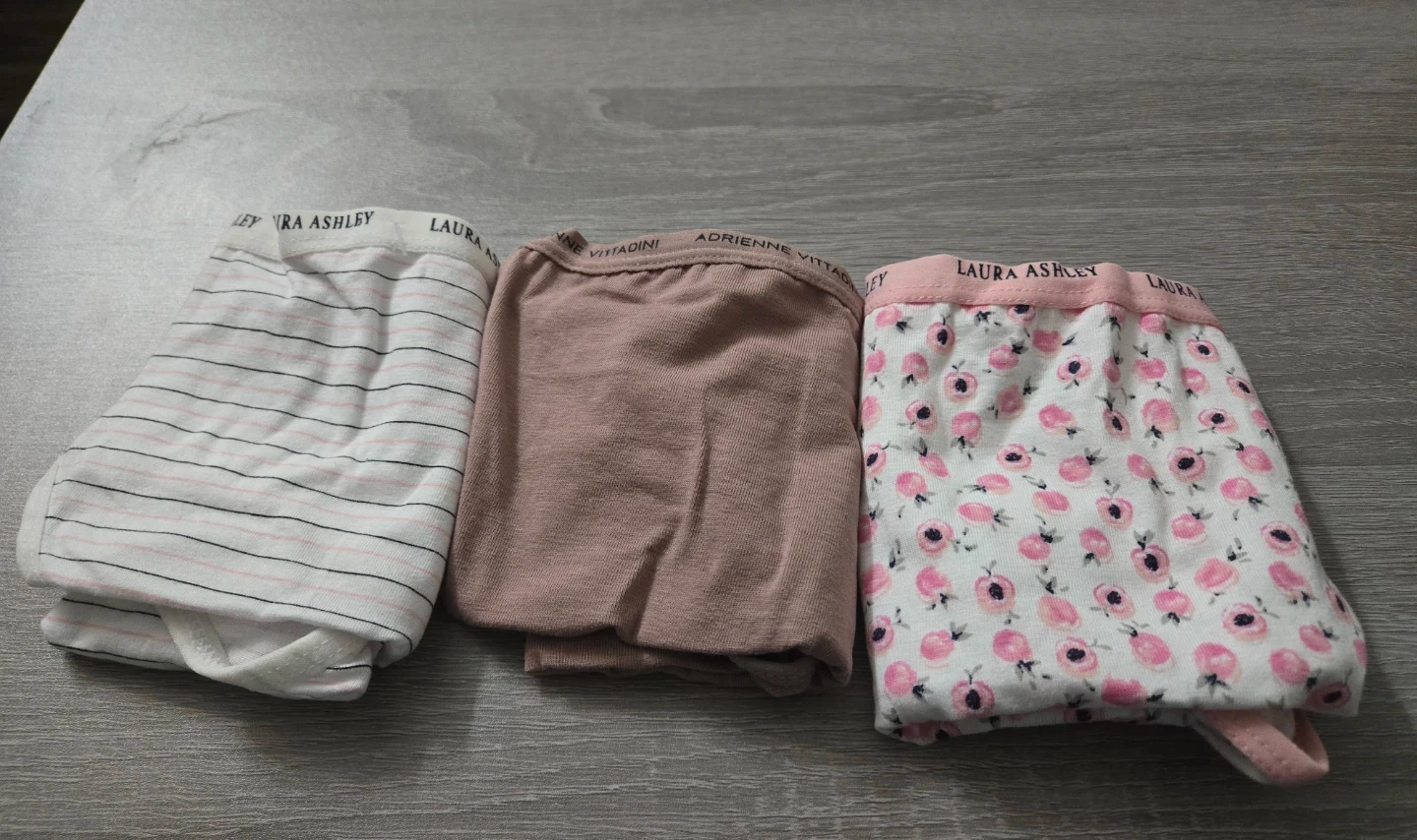 473Three Laura Ashley panties in size medium. They are made of 95% cotton and 5% spandex.