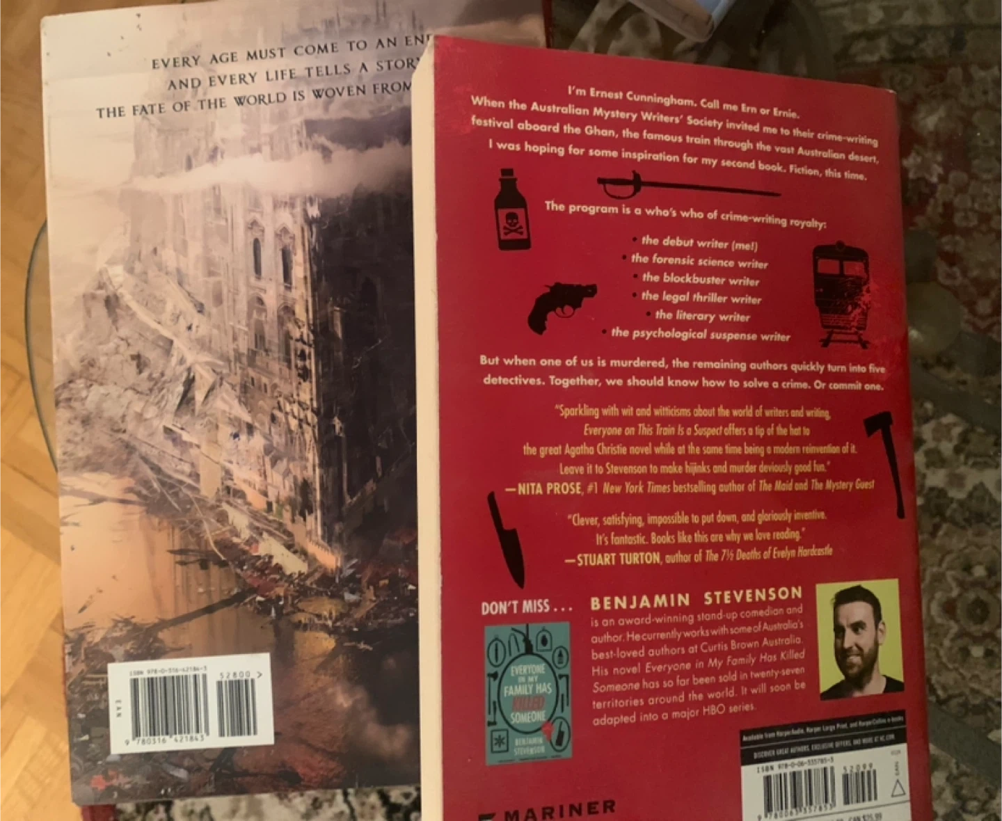 907Selling two books: "Age of Ash" by Daniel Abraham and "Everyone on This Train is a Suspect" by Benjamin Stevenson 2 for $20 -smoke free household Pickup only