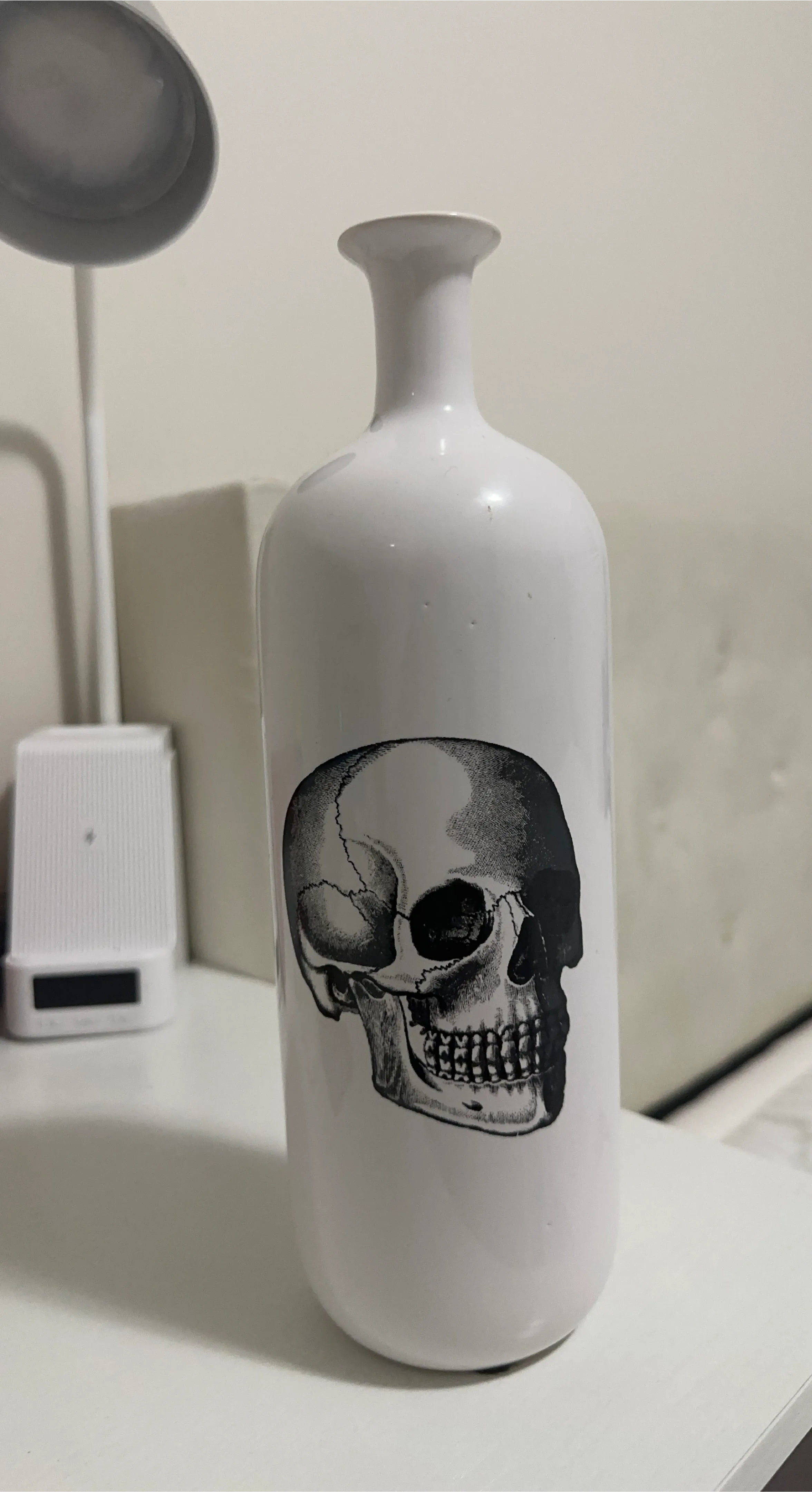 White Vase with Skull Design