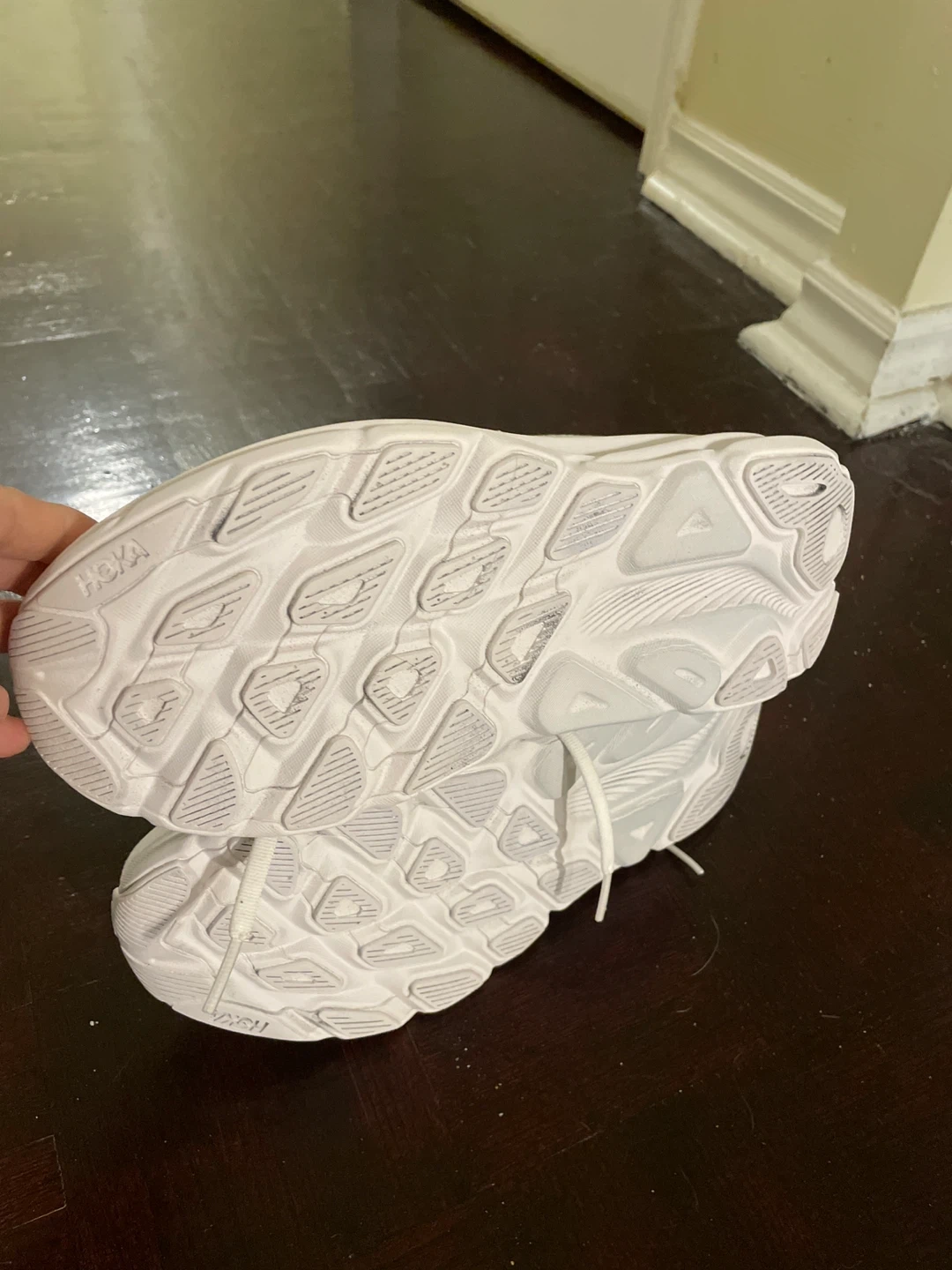 Selling a pair of women’s Hoka Clifton 9 Wide sneakers in white. They are in great shape and ready for a new home. The size is US 7.5.