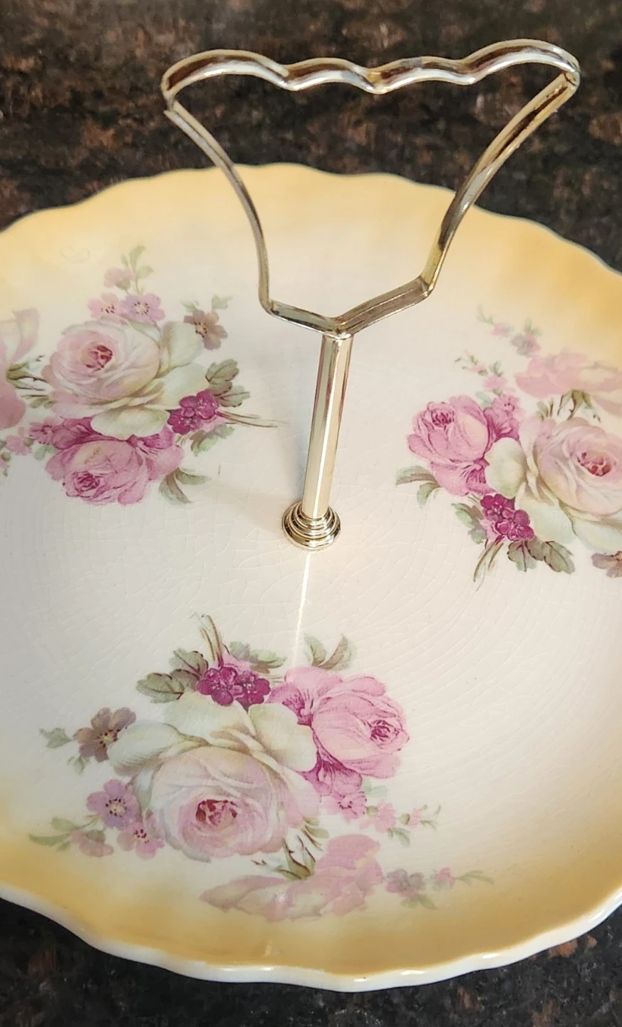 Selling a lovely vintage serving tray with floral patterns! It's in great condition and would be perfect for afternoon tea or displaying treats. One tray has gold floral patterns, and the other has pink roses. A charming addition to any home!