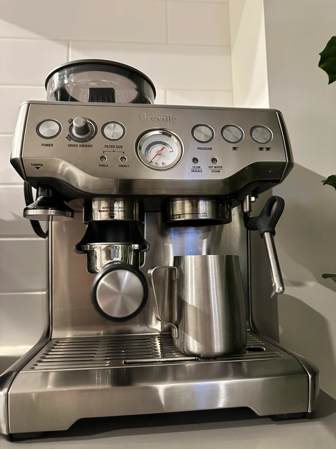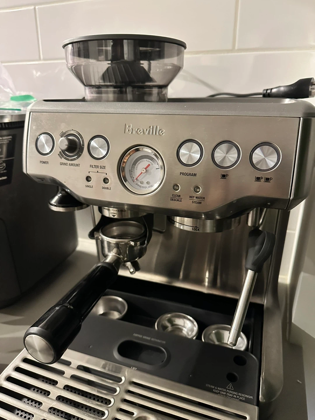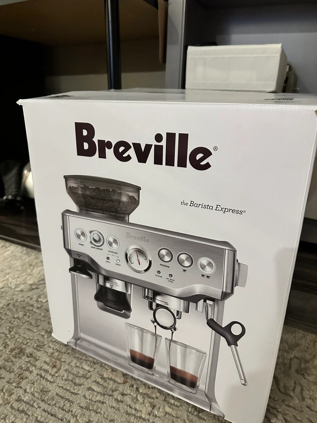 10Selling a Breville Barista Express espresso machine! It's in great shape and comes with the box. Also included are the cleaning kit and the razor. Rarely used Comes with box but without styrofoam.