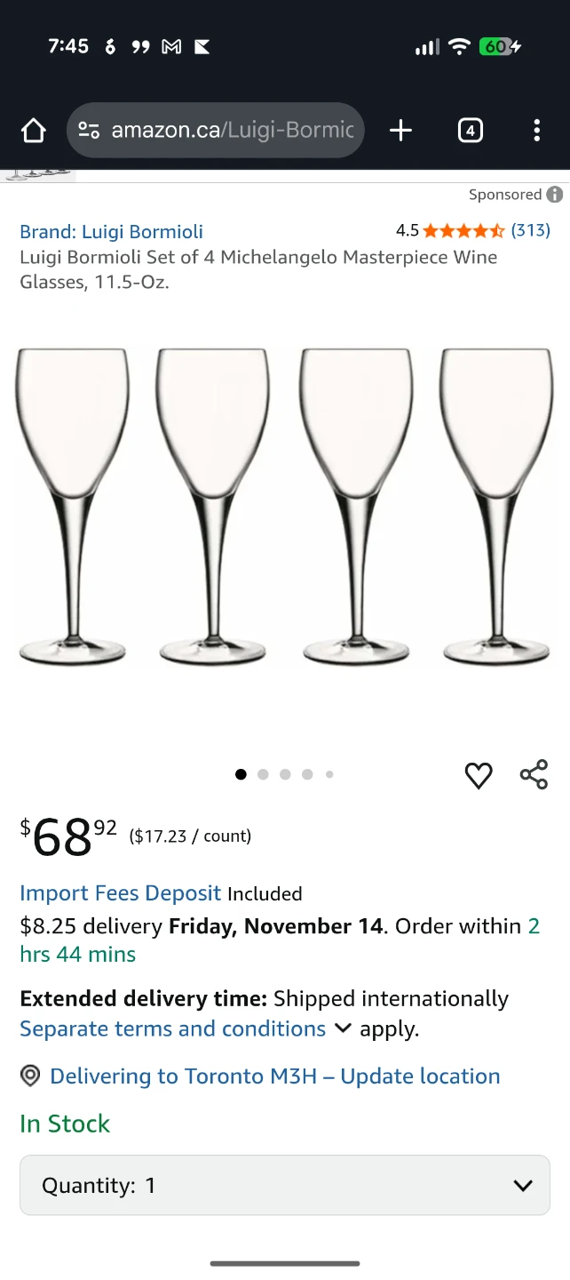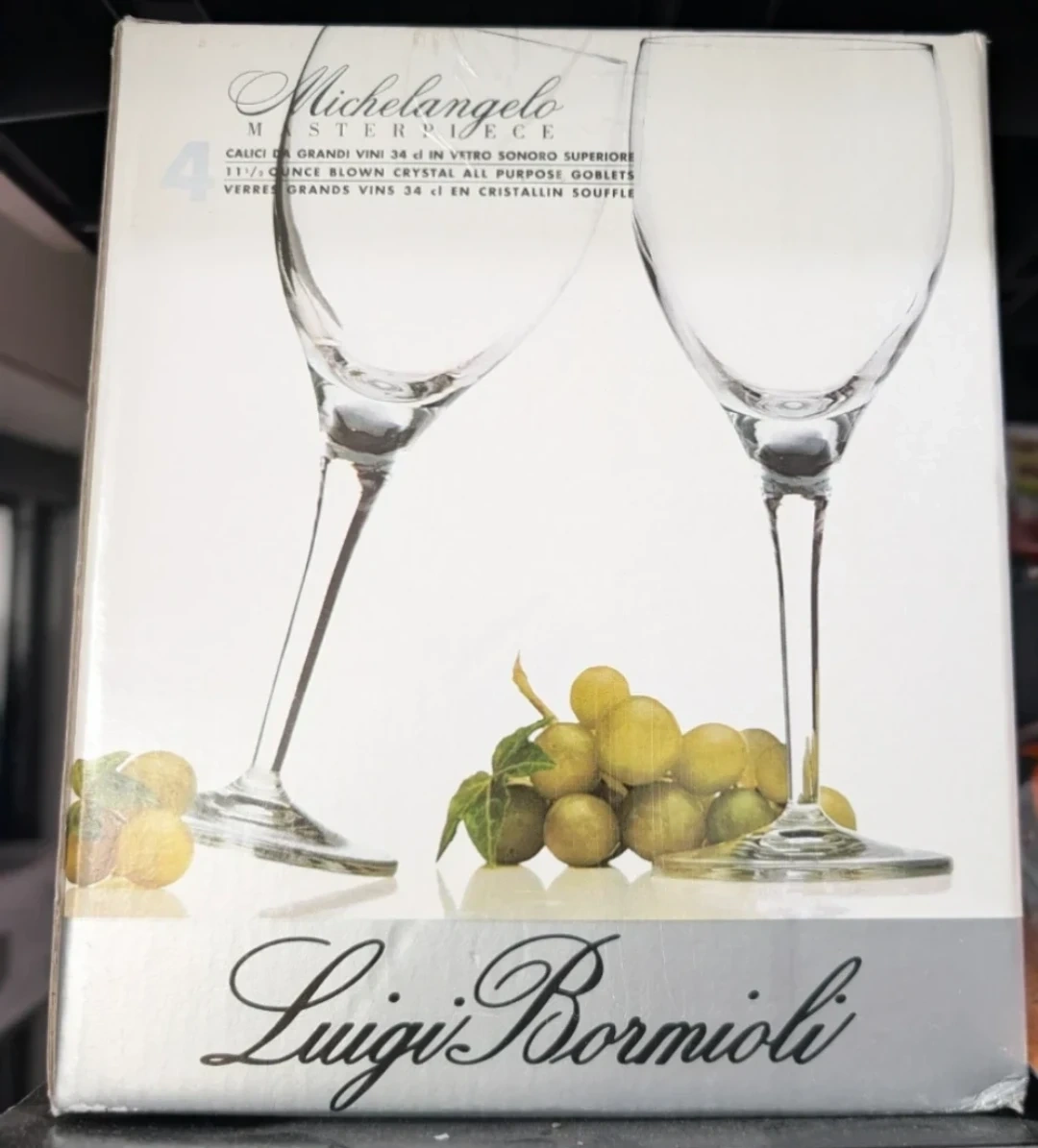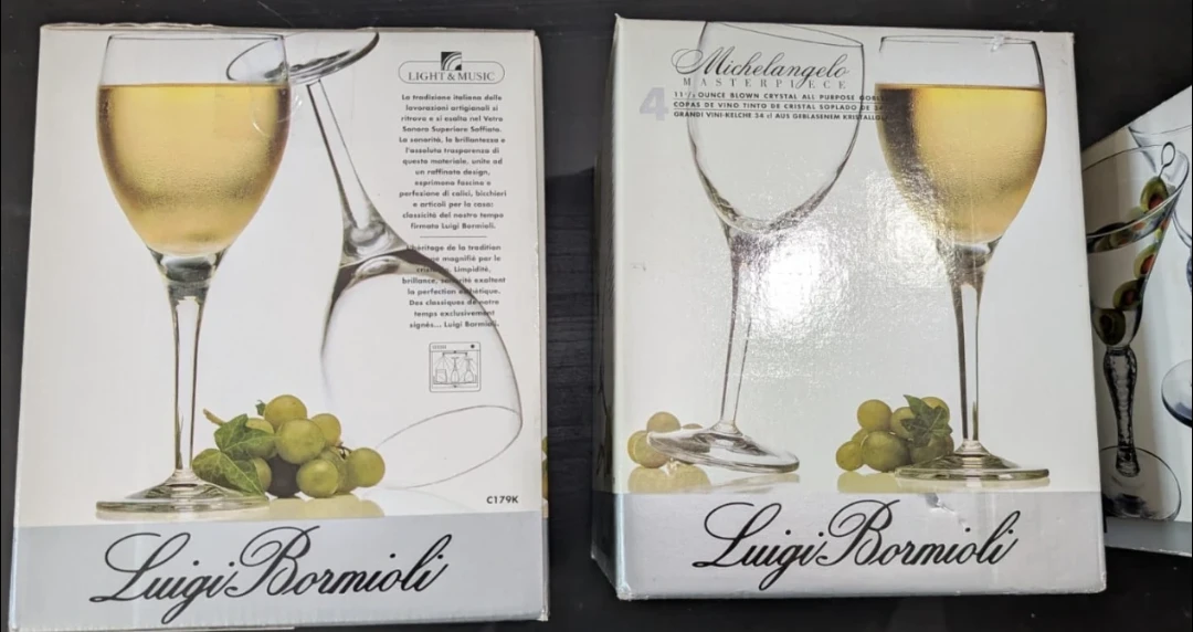 Selling Brand New sets(2) of four Luigi Bormioli Michelangelo Masterpiece wine glasses. These glasses are 11.5 oz each. They come in the original box!
