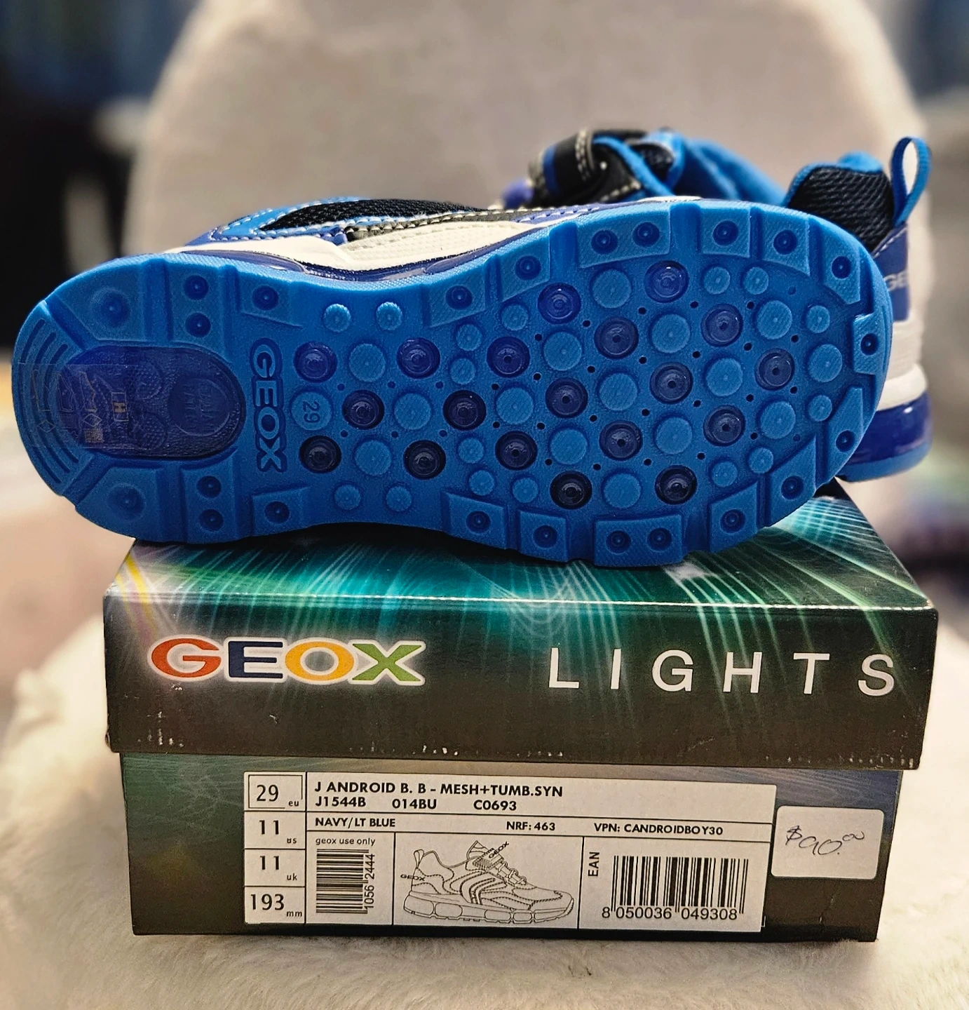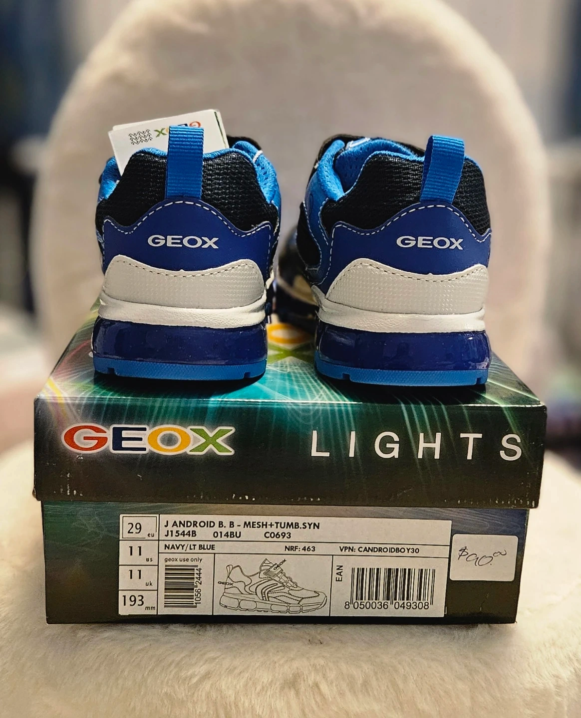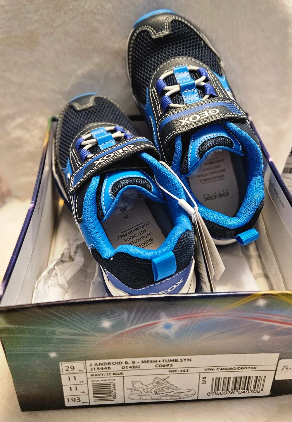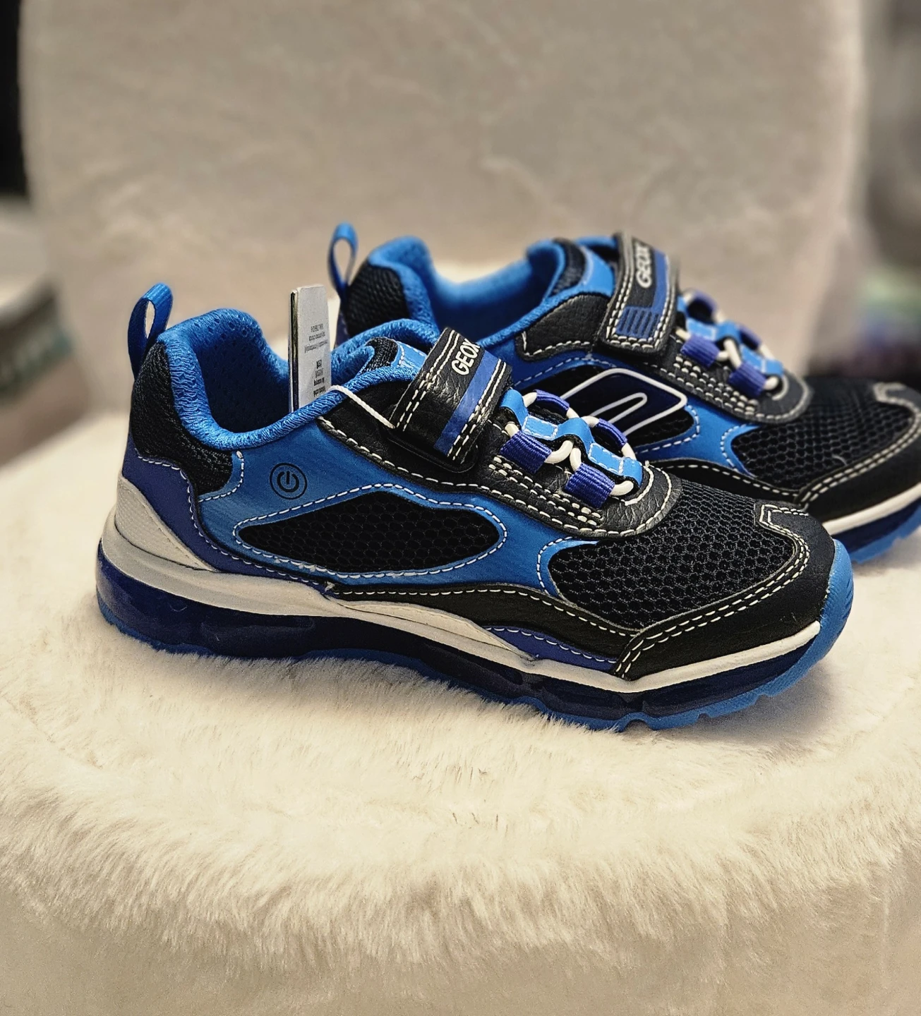 Check out these brand new Geox kids' sneakers! They're a stylish mix of Navy & light blue, perfect for active kiddos.