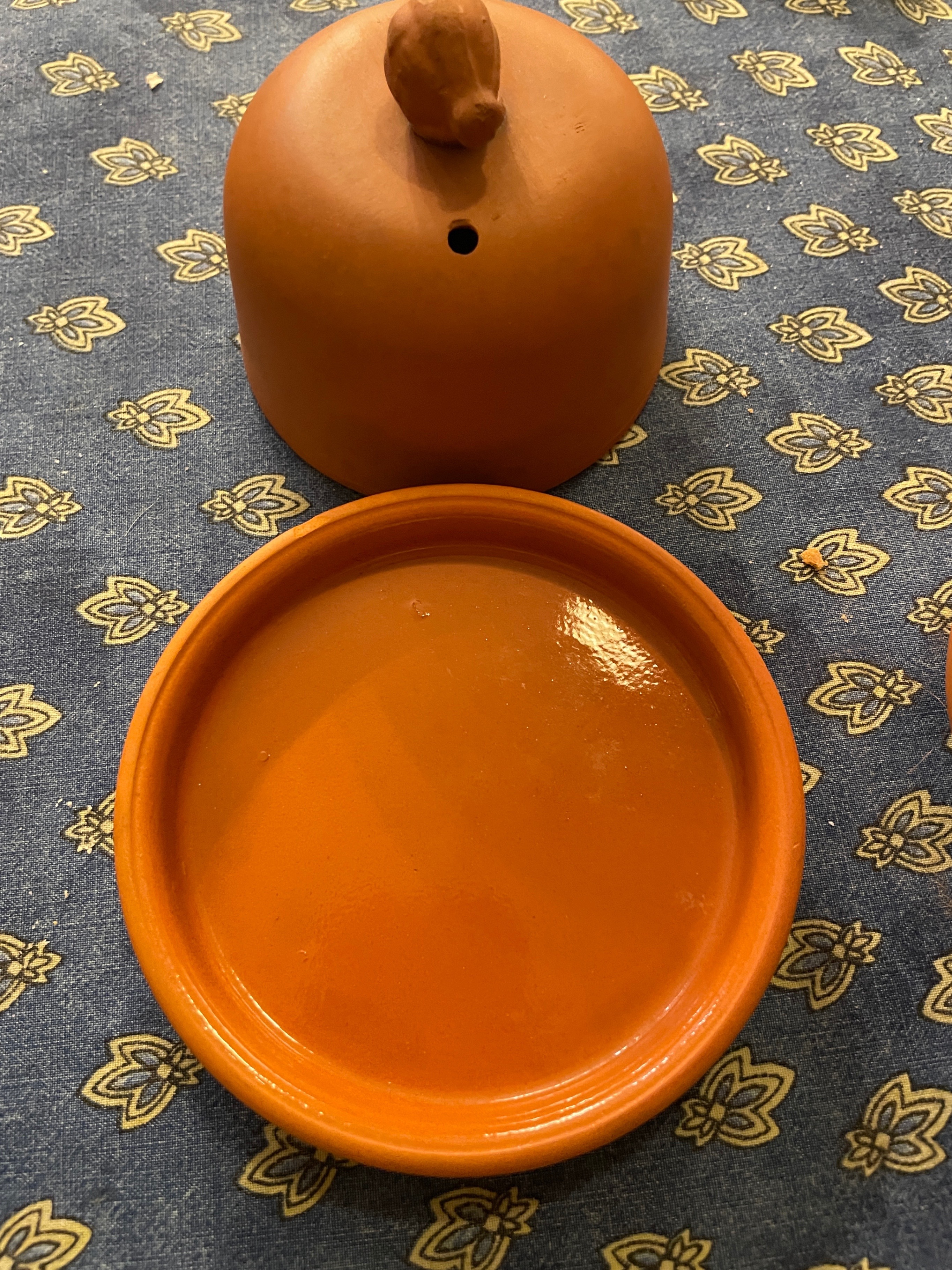 Vintage Himark terra cotta garlic baker, made in Portugal. Baker base is glazed for easy cleaning. Used β in excellent condition.