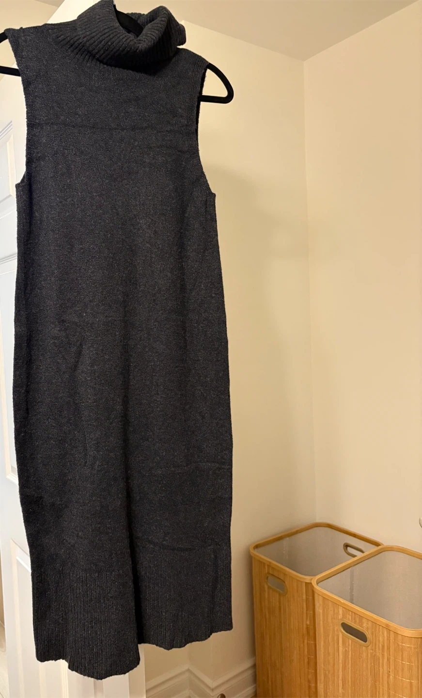 632RW&CO sleeveless turtleneck dress in a dark gray colour! It’s soft and sexy. The tag indicates that it's made of 58% cotton, 28% nylon, 11% polyester, and 3% elastane. It's marked as a size medium. Pickup near Main subway station/Danforth go station (near Ted Reeves park). Specific address to be provided. I do not deliver. Cash only.
