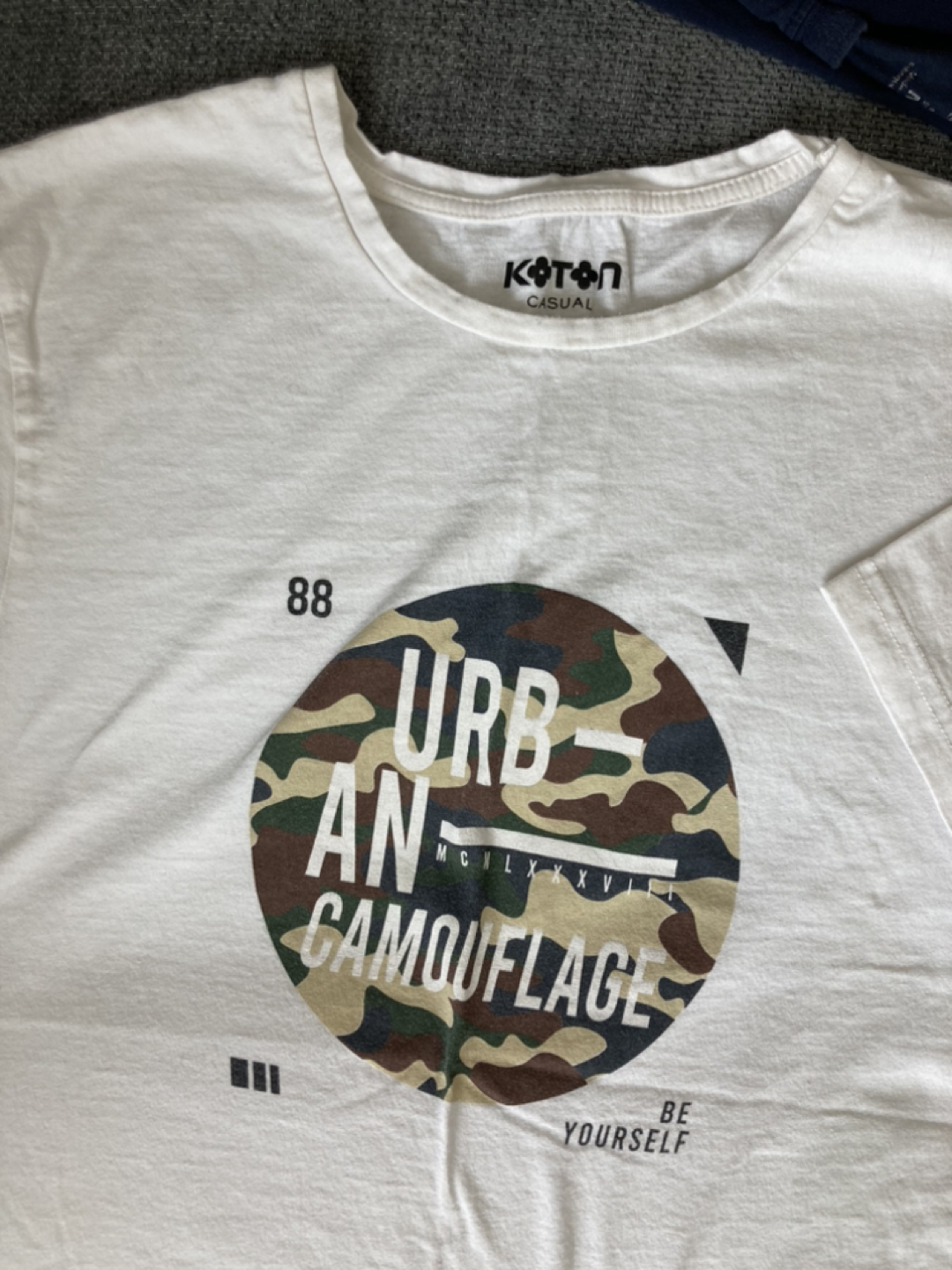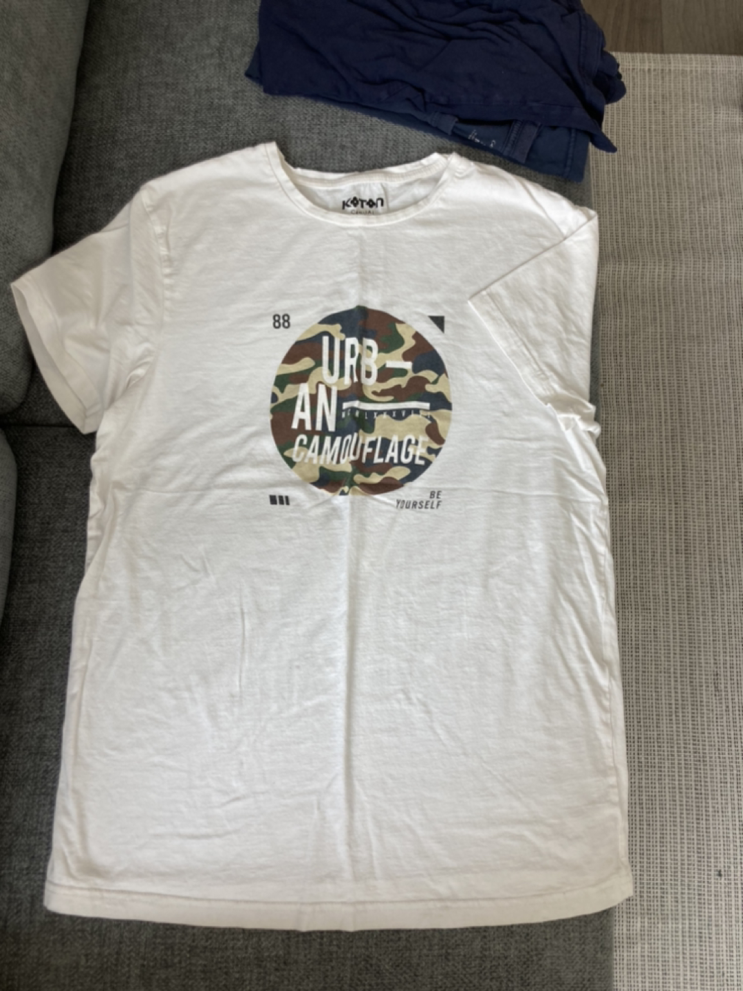 White graphic tshirt. Brand Koton. Size L slim fit. Unisex.