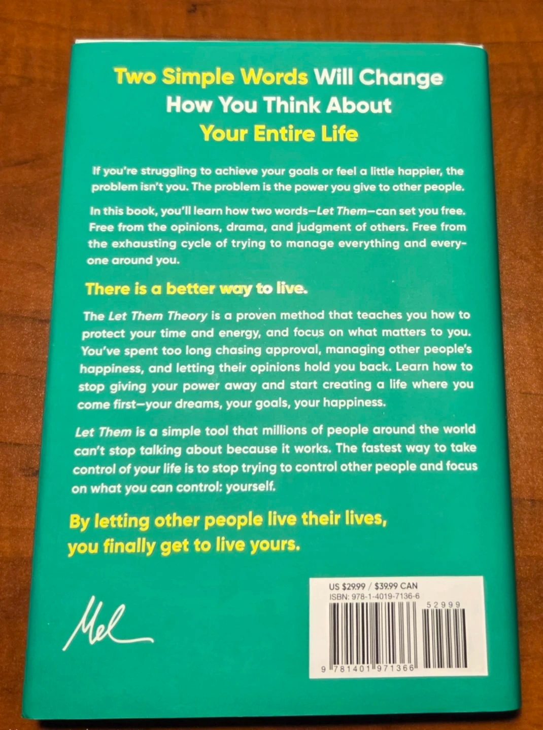 Selling "The Let Them Theory" by Mel Robbins! It's a New York Times Bestseller. This book offers a life-changing tool to help you achieve your goals and take control of your life by focusing on what you can control. Learn how to stop trying to control other people and focus on yourself!