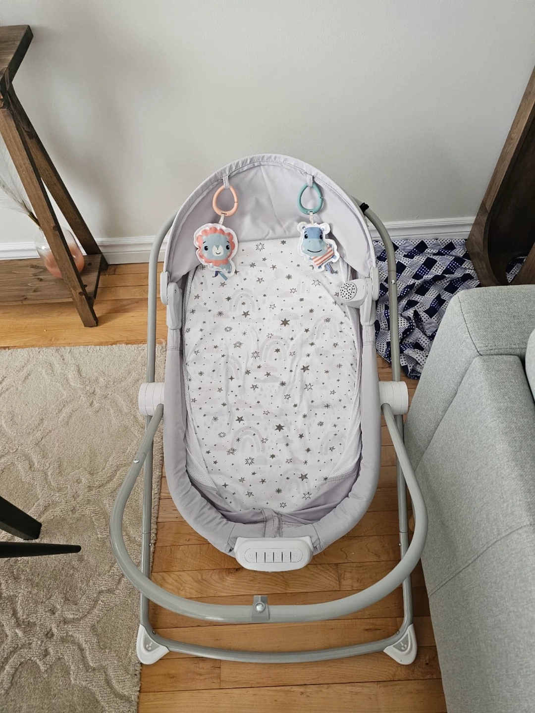 Selling a Bassinet in excellent condition! It features soothing sounds and vibrations to help your little one drift off to sleep. The bassinet is lightweight and portable, making it easy to move from room to room. It also folds away for convenient storage or travel. Perfect for newborns up to a few months old!