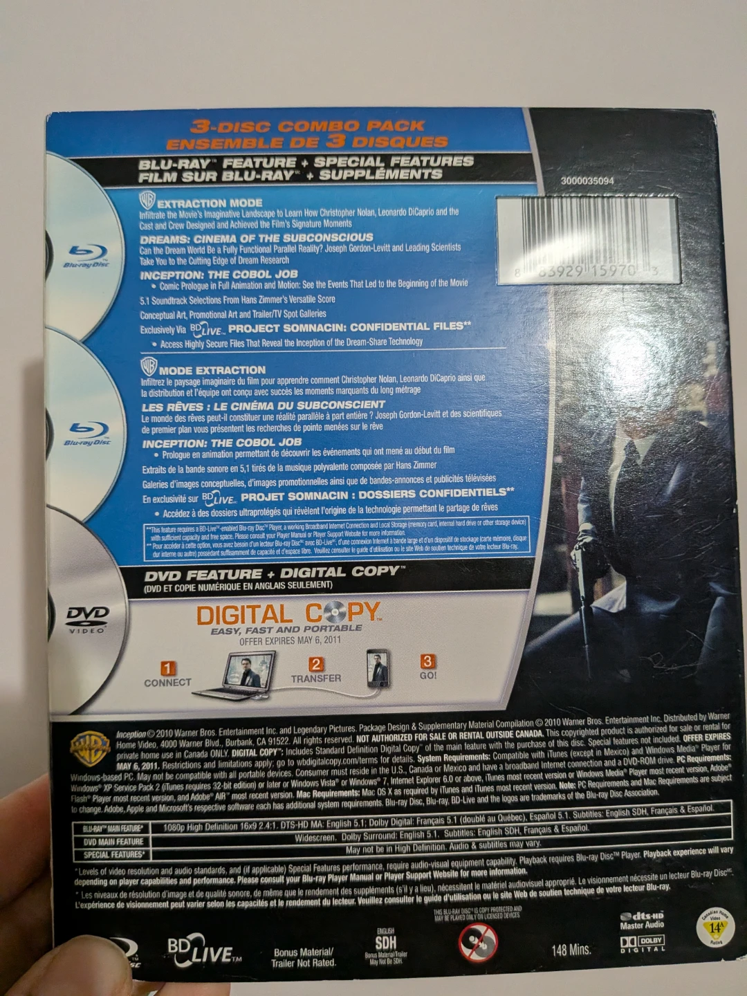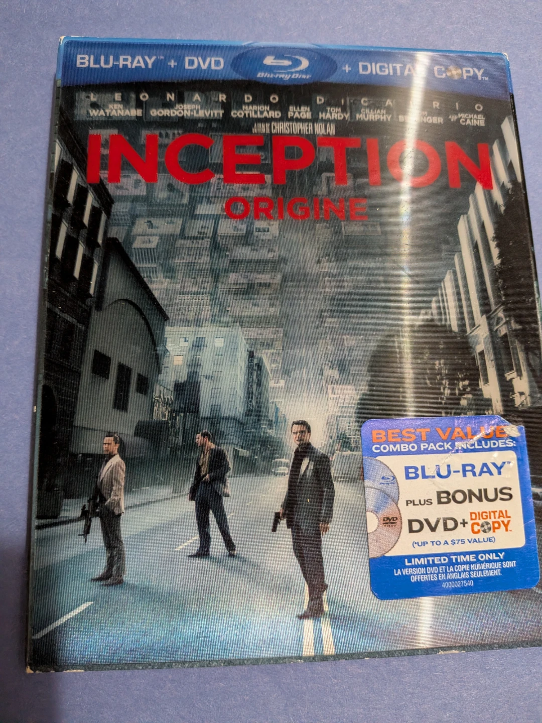 Selling a combo pack of Inception on Blu-ray and DVD, plus a digital copy! This is the 3-disc combo pack with special features. Enjoy the movie and the extras!