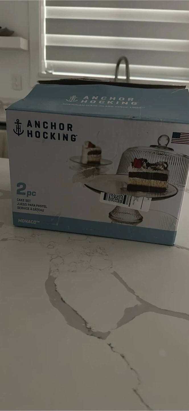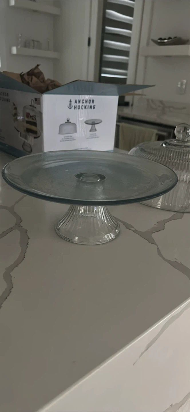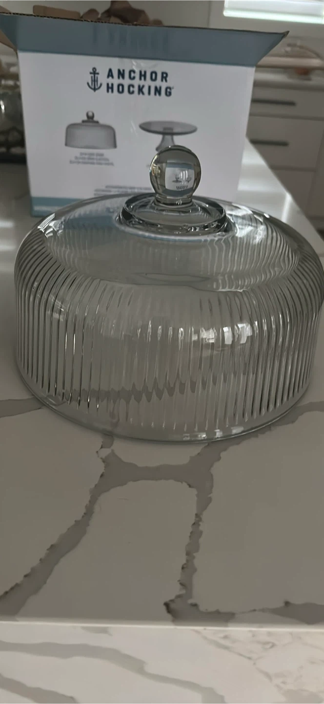 Selling a lovely Anchor Hocking Monaco cake stand with a dome lid! It's in great shape and comes with the original box. Perfect for displaying your baked goods or desserts at your next gathering!