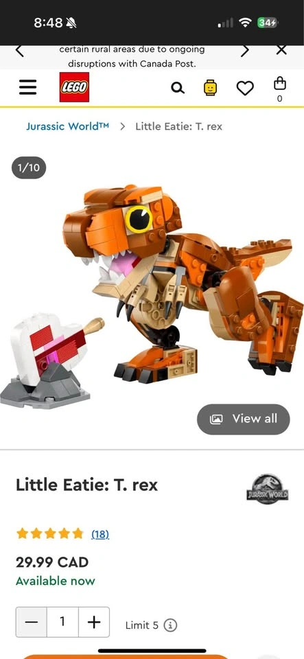 New, unopened, factory sealed LEGO Jurassic World Little Eatie: T. Rex (76967). Retails for $30+txs. Box has some retail shelf wear.