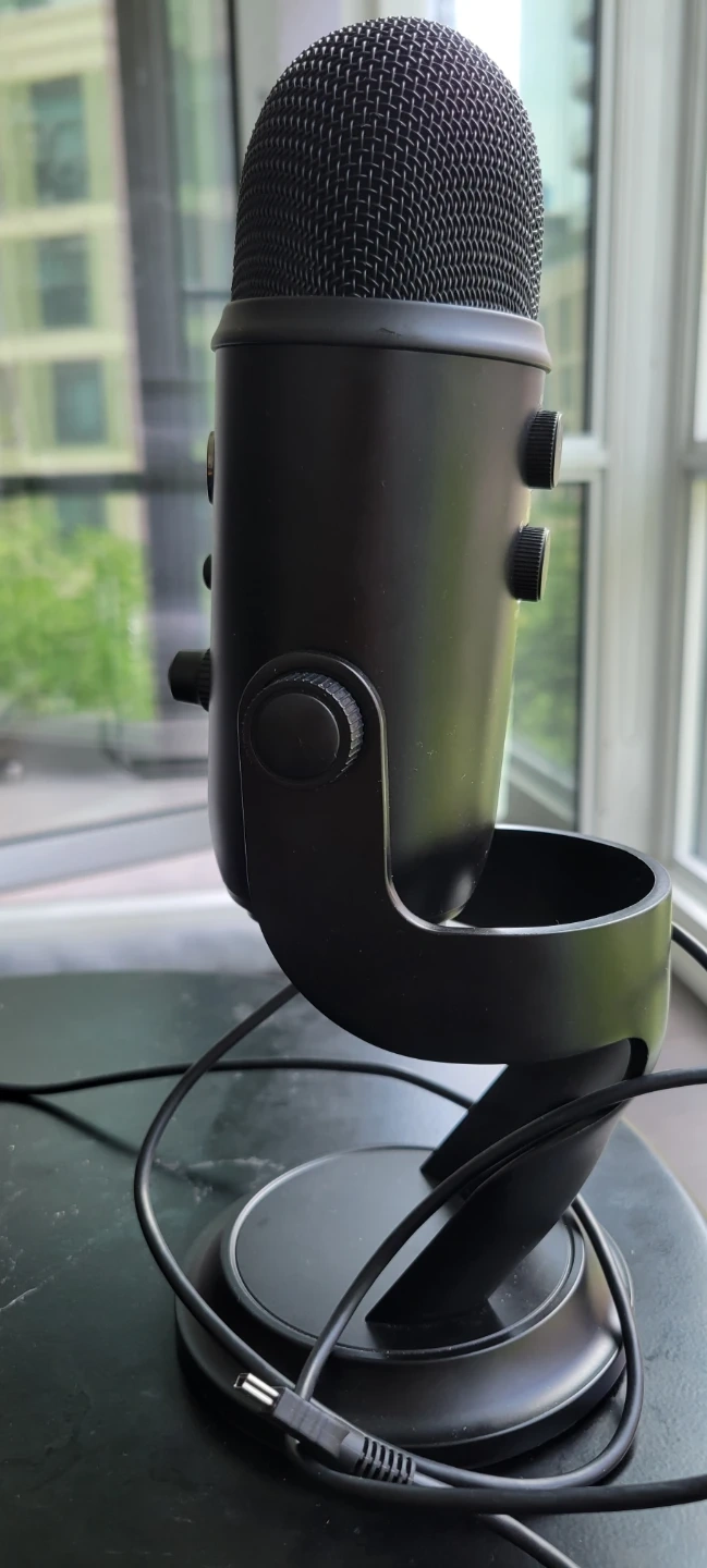 Selling a Blue Yeti USB microphone in the blackout edition. It's in great condition and ready for a new home. Perfect for podcasting, streaming, or recording music!