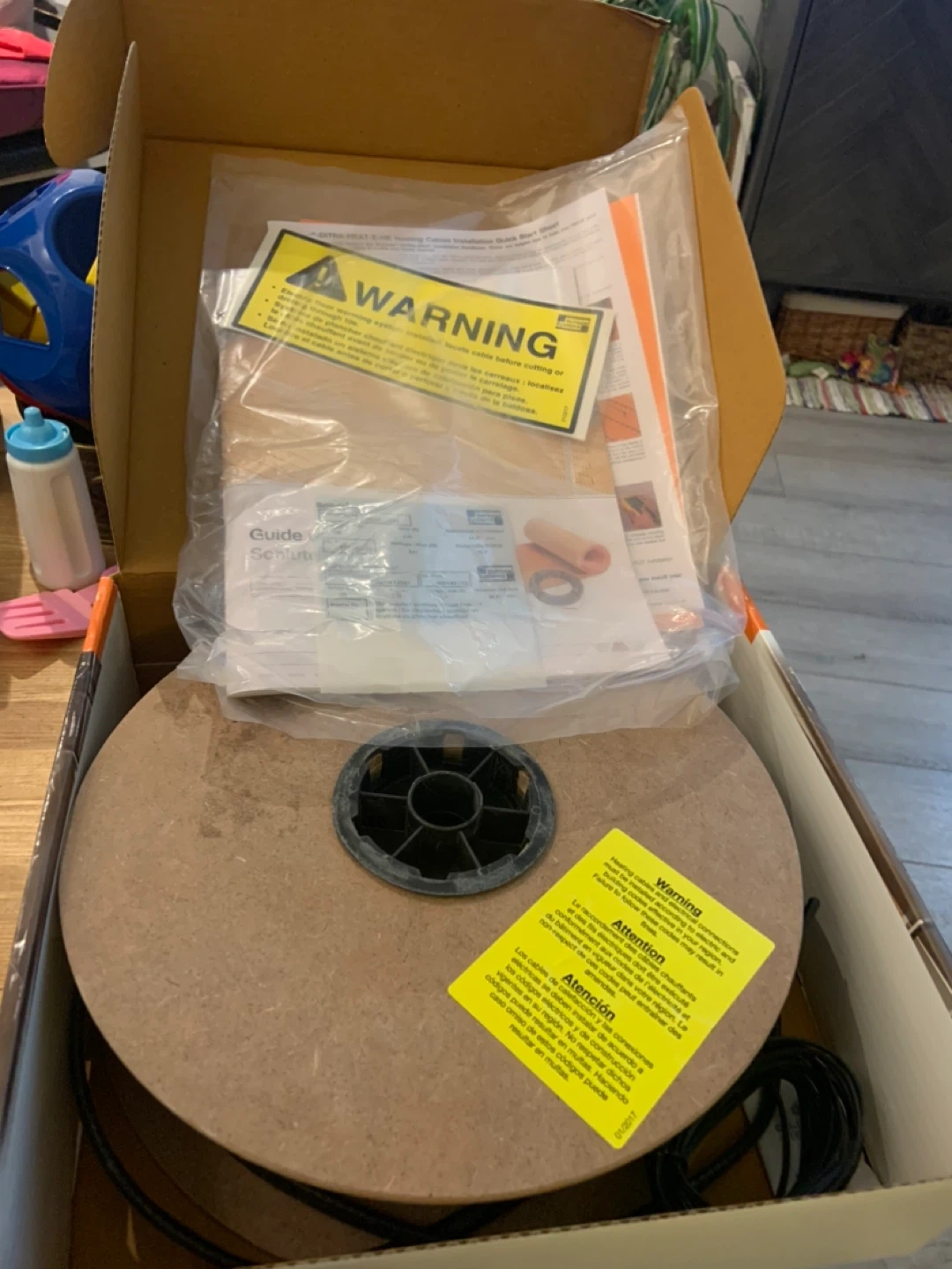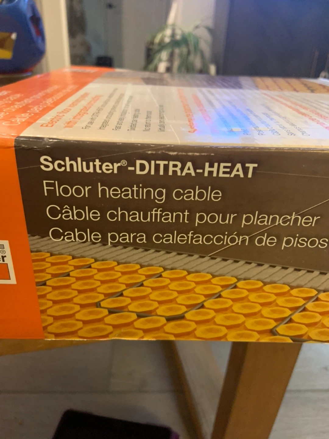 Selling a Schluter DITRA-HEAT floor heating cable. It's brand new in the box and ready to install! The cable is 141.1 ft (43.0 m) long and provides electric floor warming with integrated uncoupling. It prevents cracked tiles and grout, and no self-levelers are required. It also features virtually zero electromagnetic field