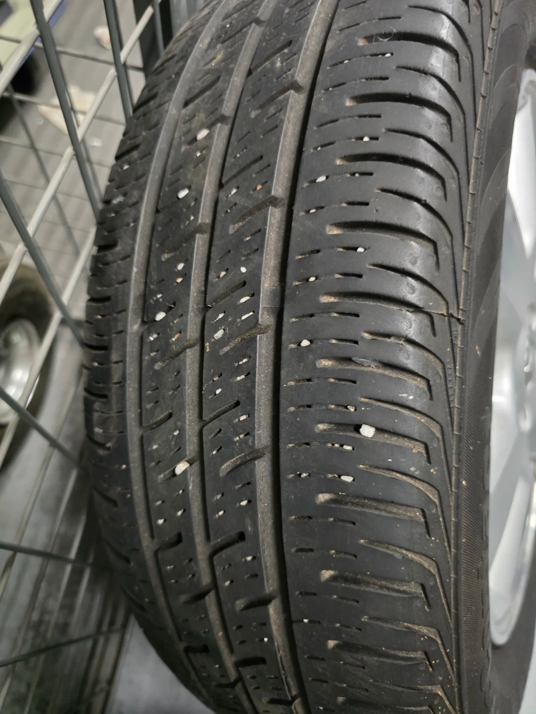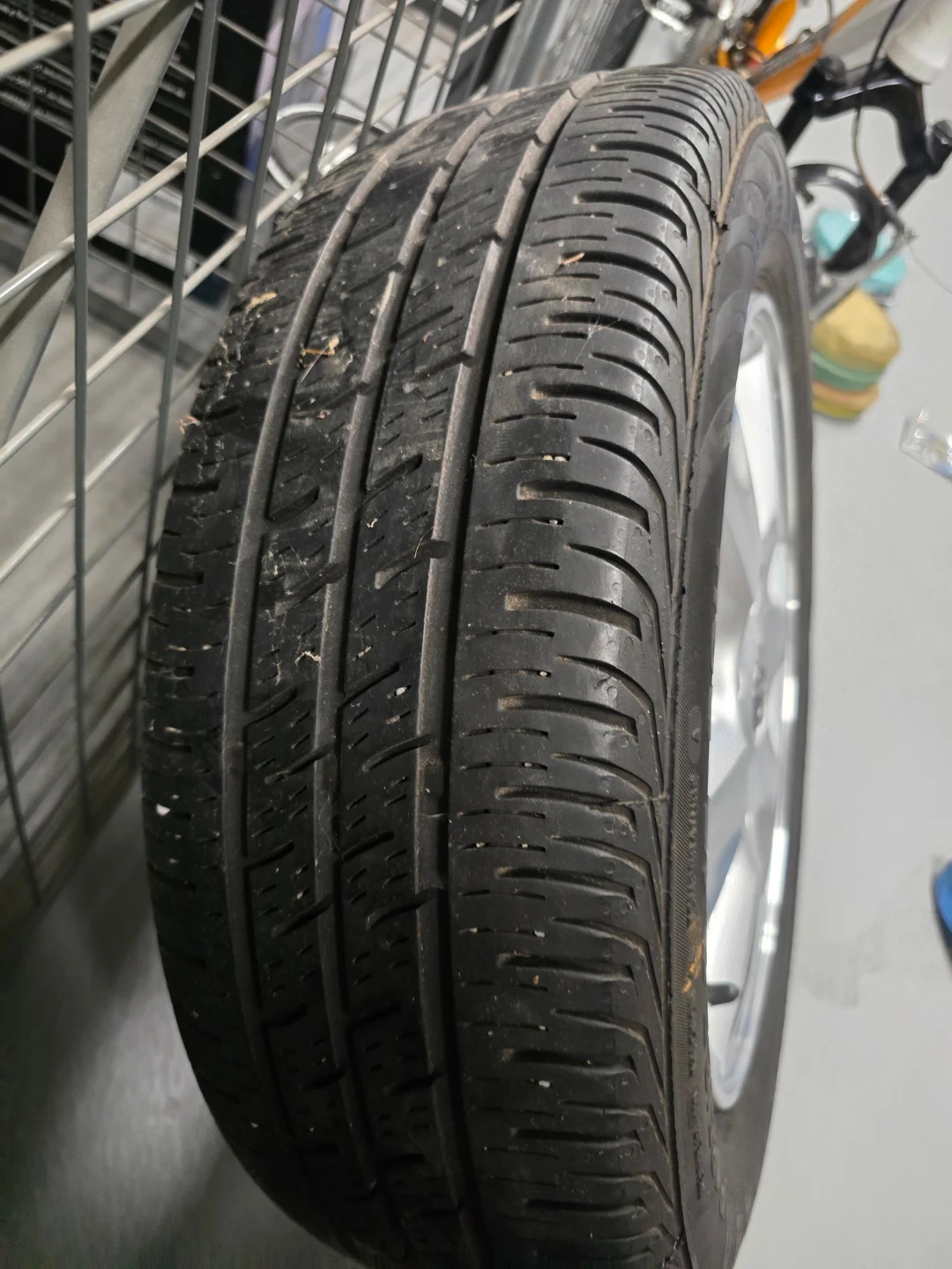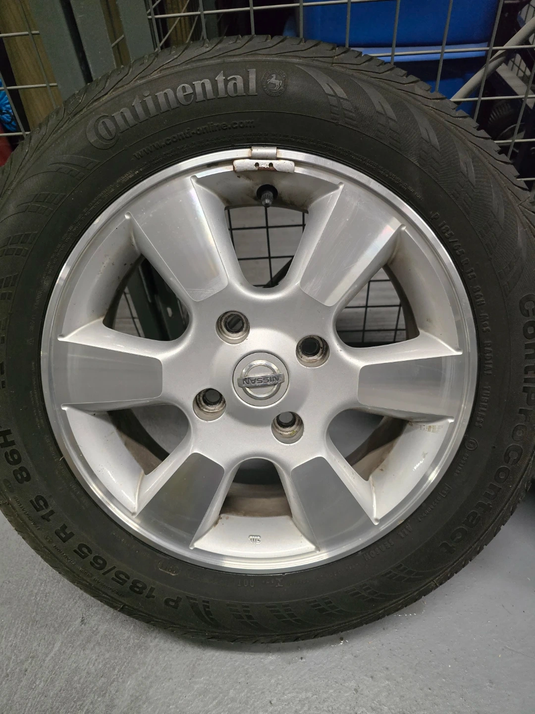 Selling a Nissan wheel with a Continental ContiProContact tire. The tire size is 185/65R15 86H. Good for someone looking for a spare or replacement!