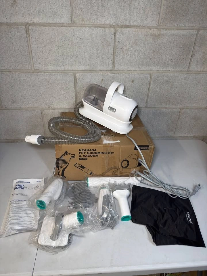 The Neakasa Pet Grooming Vacuum Kit (29 Γ 13 Γ 21 cm, 2 kg) combines 5 grooming tools with built-in suction to collect 99% of pet hair while you trim and brush. It includes a grooming brush, de-shedding brush, electric clippers with 5 guard combs (3β24 mm), plus a nozzle and cleaning brush for quick cleanup. Designed with low-noise operation and 3 suction levels, it keeps pets comfortable. The easy-empty dustbin and compact cord/hose storage make it simple to use and store.
