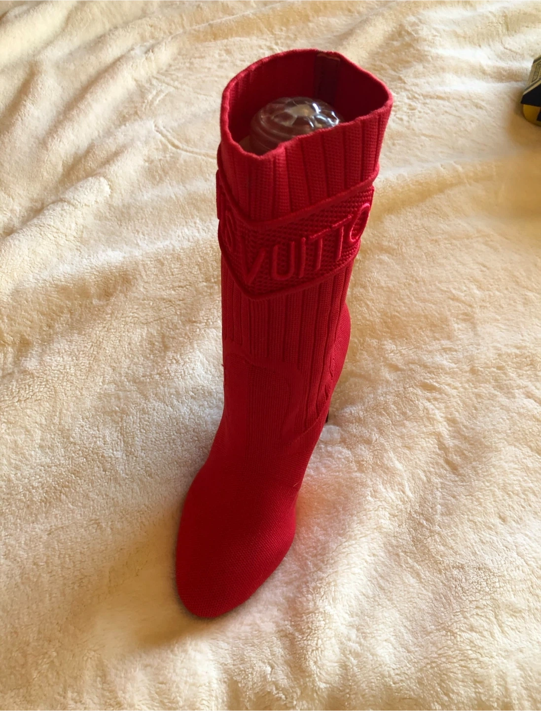 91Selling a pair of Louis Vuitton red knit boots! They are in great condition and would be a stylish addition to your wardrobe