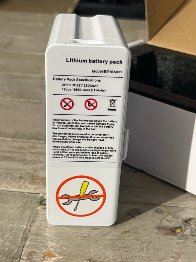 122This is the rechargeable Lithium-Ion battery pack for the VP-6 model BR16A011 Specifications: Rechargeable Lithium-Ion Battery for VP-6 Model Battery Capacity: 114Wh, 5200mAh Battery Duration: 1.5 - 2 hours. Pick up is in Brampton near Sheridan College.