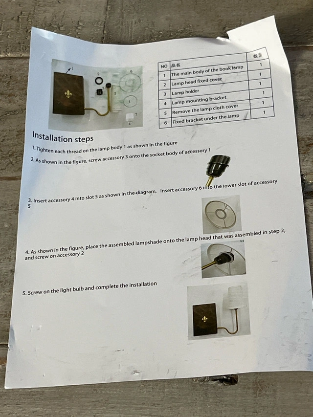 122This new wall lamp comes with all the necessary components for installation, as shown in the figure. If you're reading this, the item is still available!