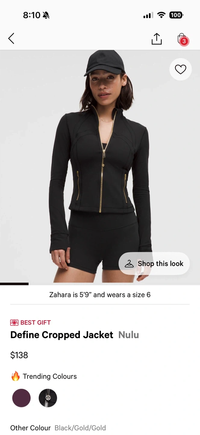 Selling a Lululemon Define Cropped Jacket in black with gold accents! Originally bought for $138