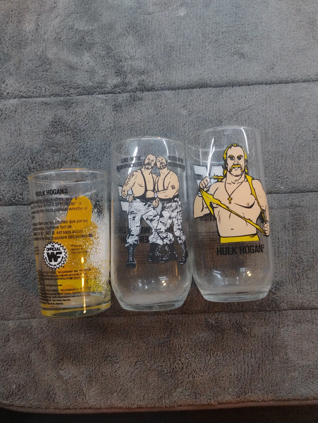 Vintage WWF Wrestling Glasses - Hulk Hogan, Bushwhackers