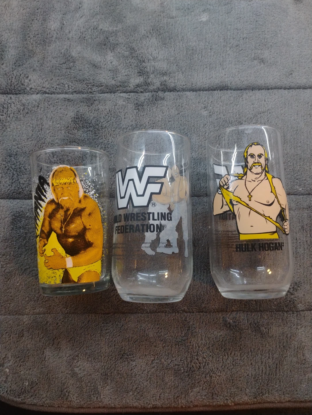 104Selling a set of vintage WWF wrestling glasses! Includes Hulk Hogan and The Bushwhackers. Great for any wrestling fan or collector!