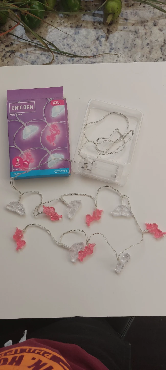 I'm selling a set of adorable Unicorn Fairy Lights! These battery-operated lights would be perfect to decorate your room room or party. Comes with the original box and packaging.