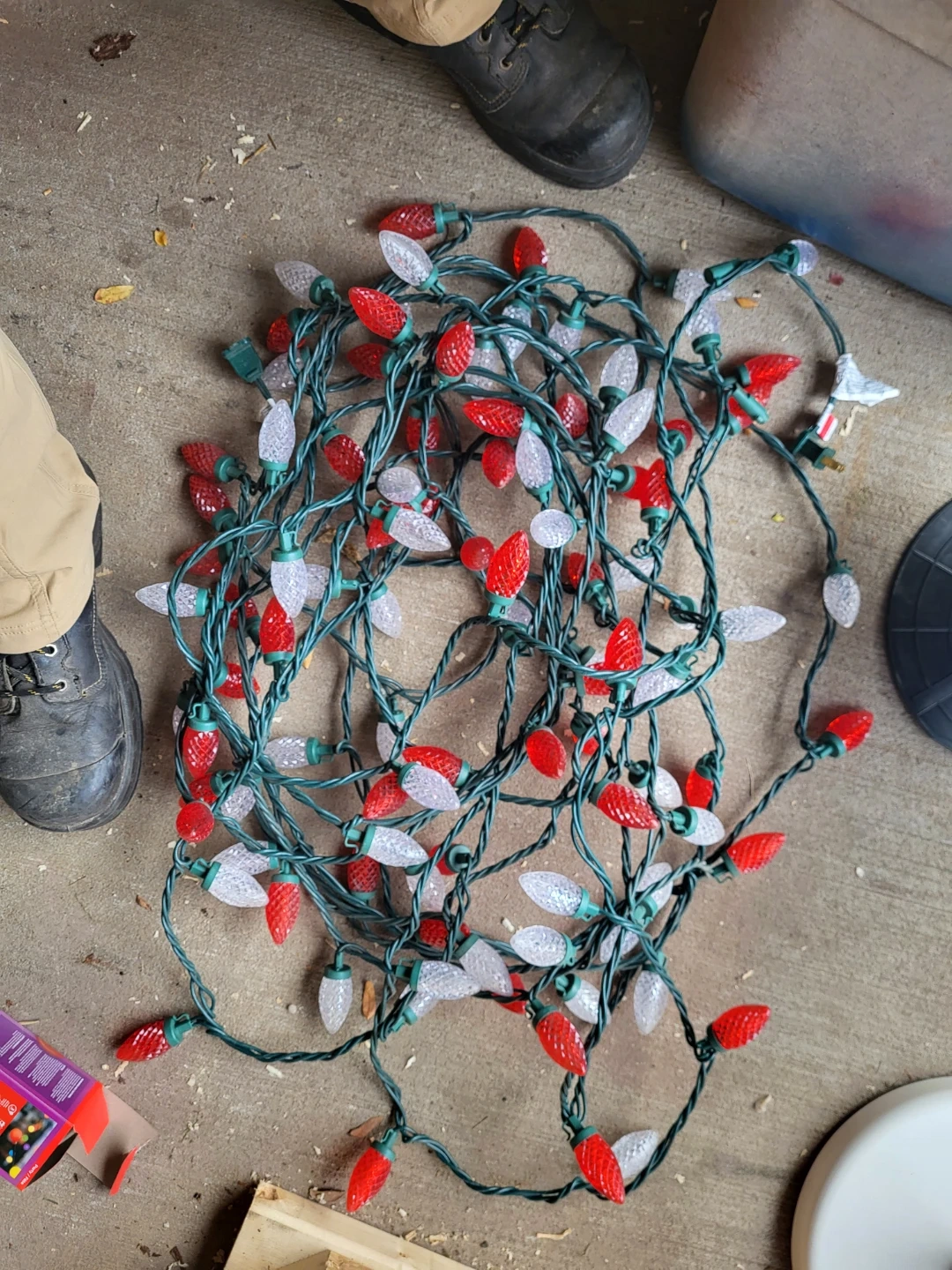 Selling a set of Holiday Time super bright string lights. It's a C9 type with red and white LED bulbs. The string is 58 feet long and has 100 lights. These are suitable for both indoor and outdoor use. Originally bought for $34.98. Half are not working, but come woth new fuse and lights.