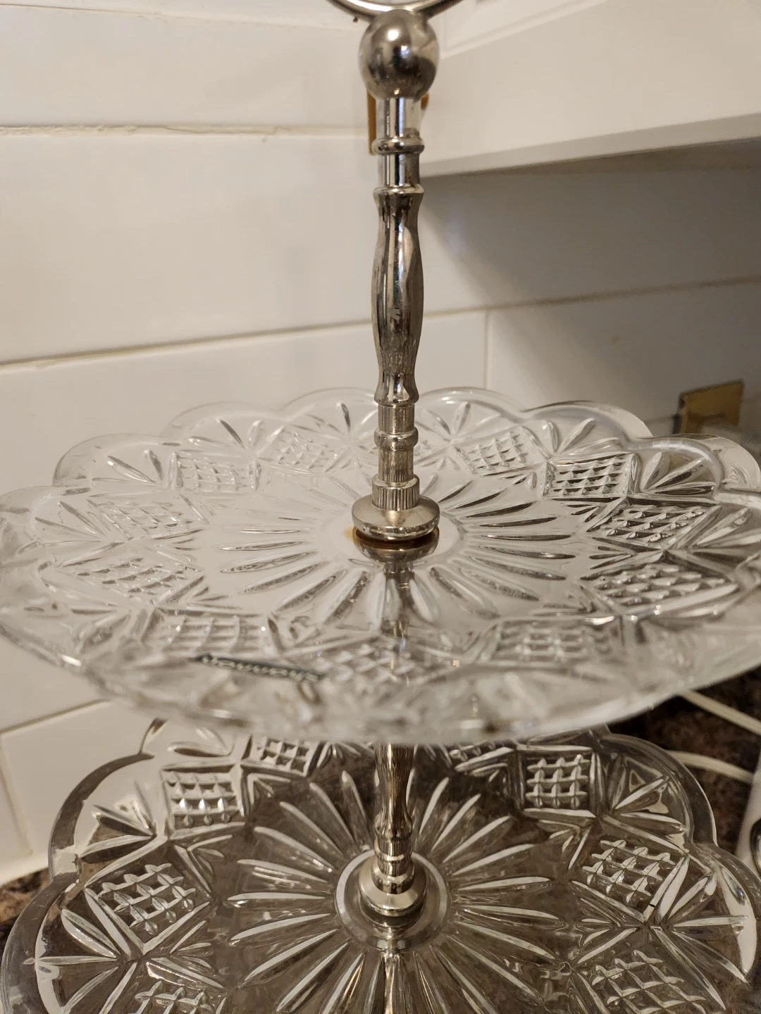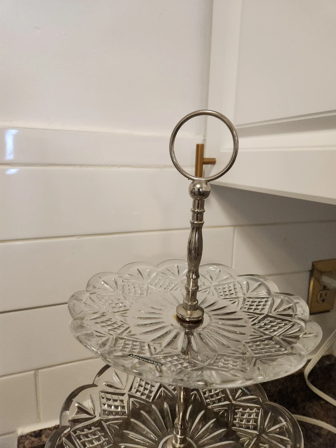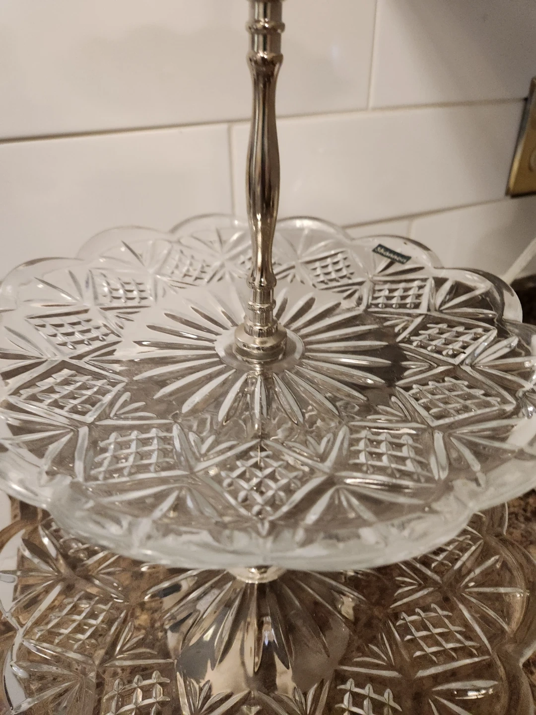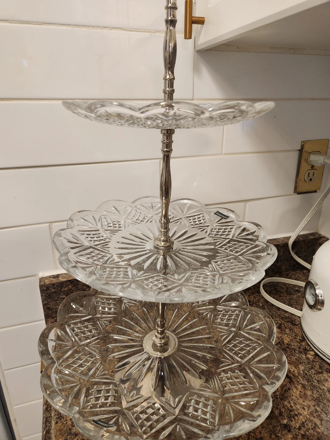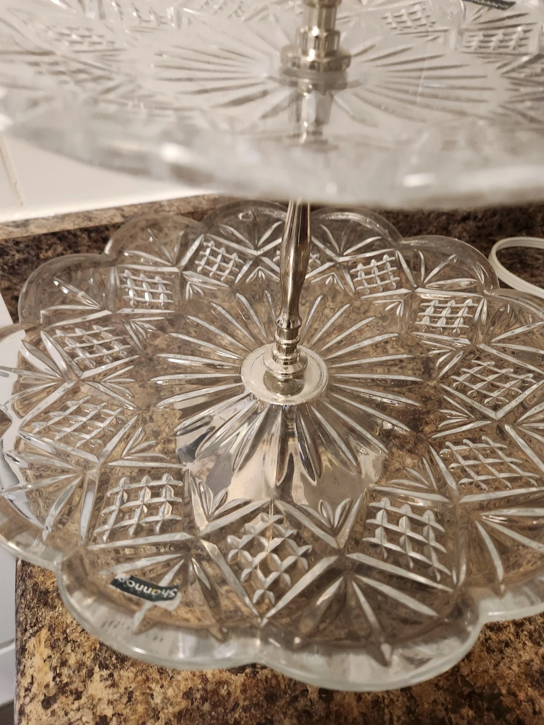 Selling a beautiful Shannon Crystal three-tier serving stand! It's perfect for displaying desserts or appetizers at your next gathering. The stand is in great condition and ready to add a touch of elegance to your home