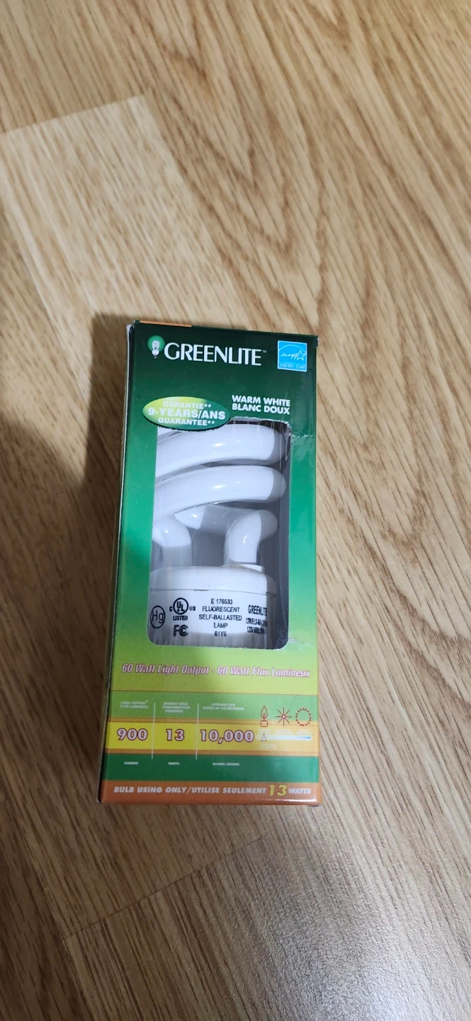 1000+Selling a Greenlite Mini lightbulb! It's 13 watts and has 10,000 hours of light price firm only cash only pickup no delivery 801 O'Connor East York outside TD Canada Trust bank door.