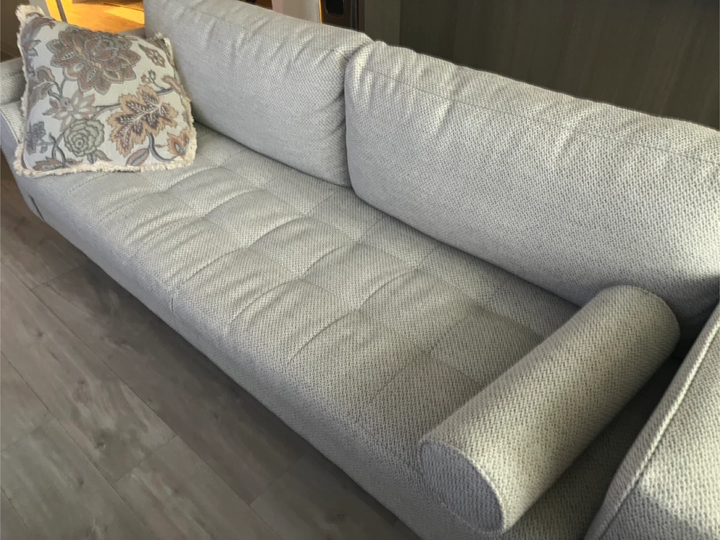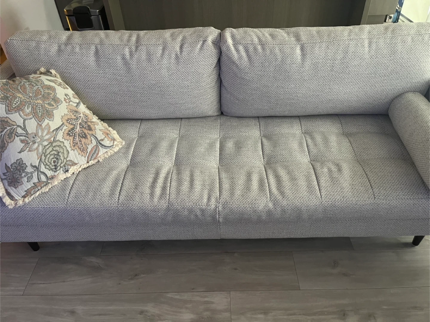 Looking for a stylish and comfy addition to your living space? This beautiful light gray sofa is in great condition, clean, and well-maintained.