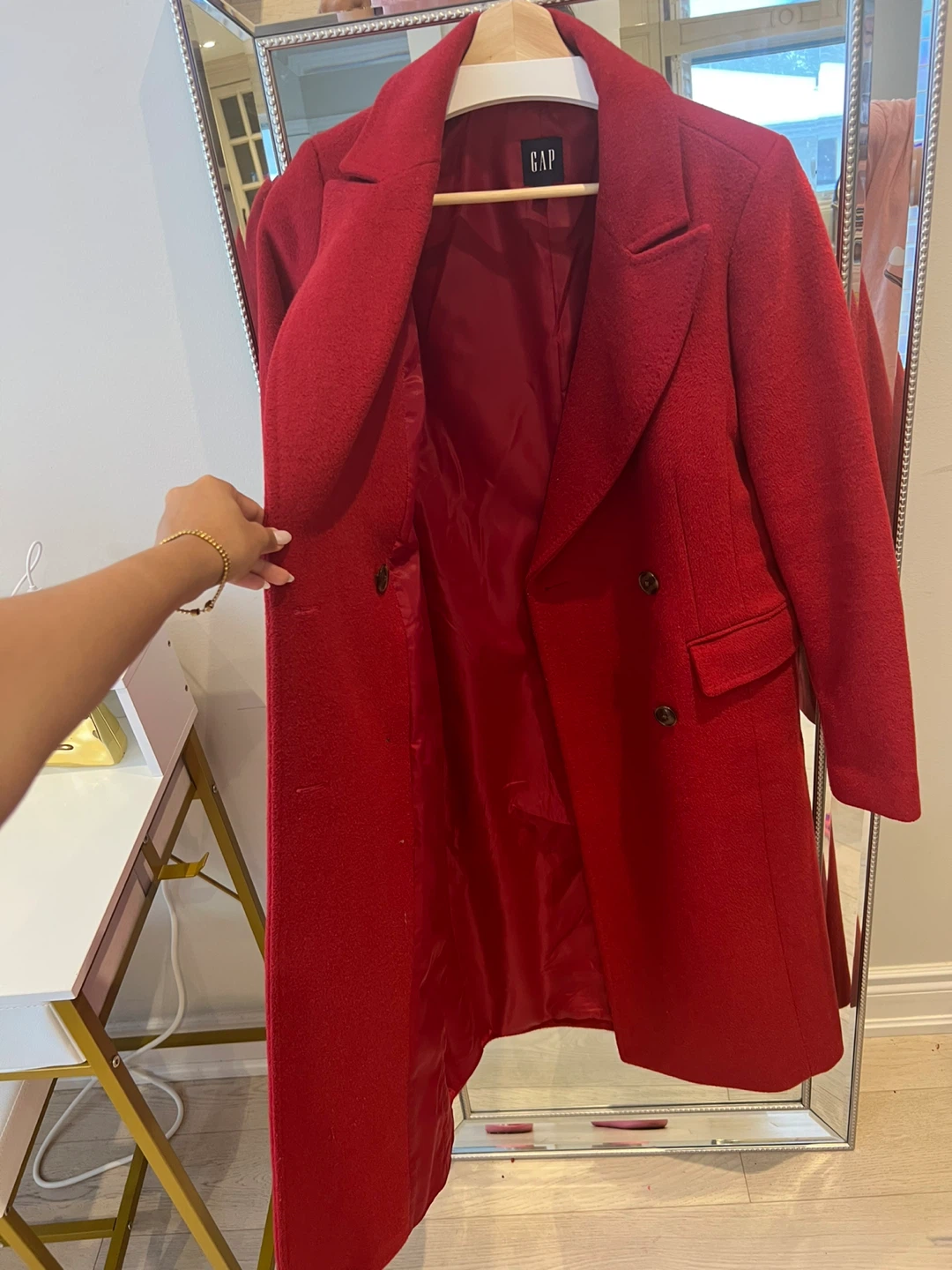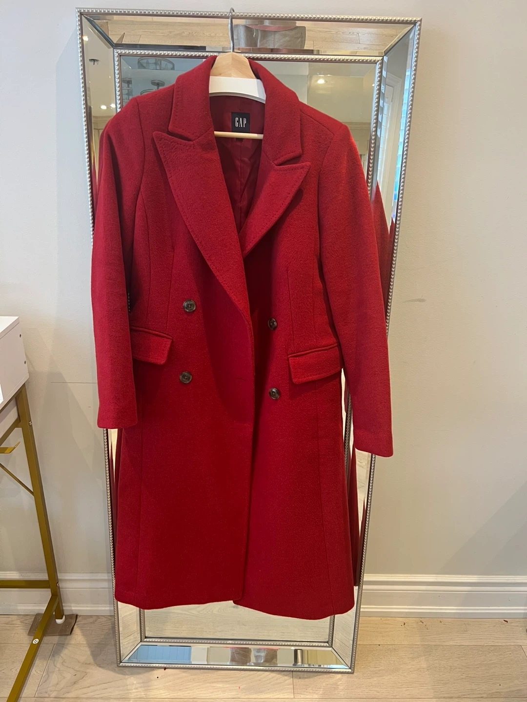 Selling a lovely red wool blend coat from GAP! It's a size XS and in great condition. Perfect for adding a pop of colour to your wardrobe this seasons