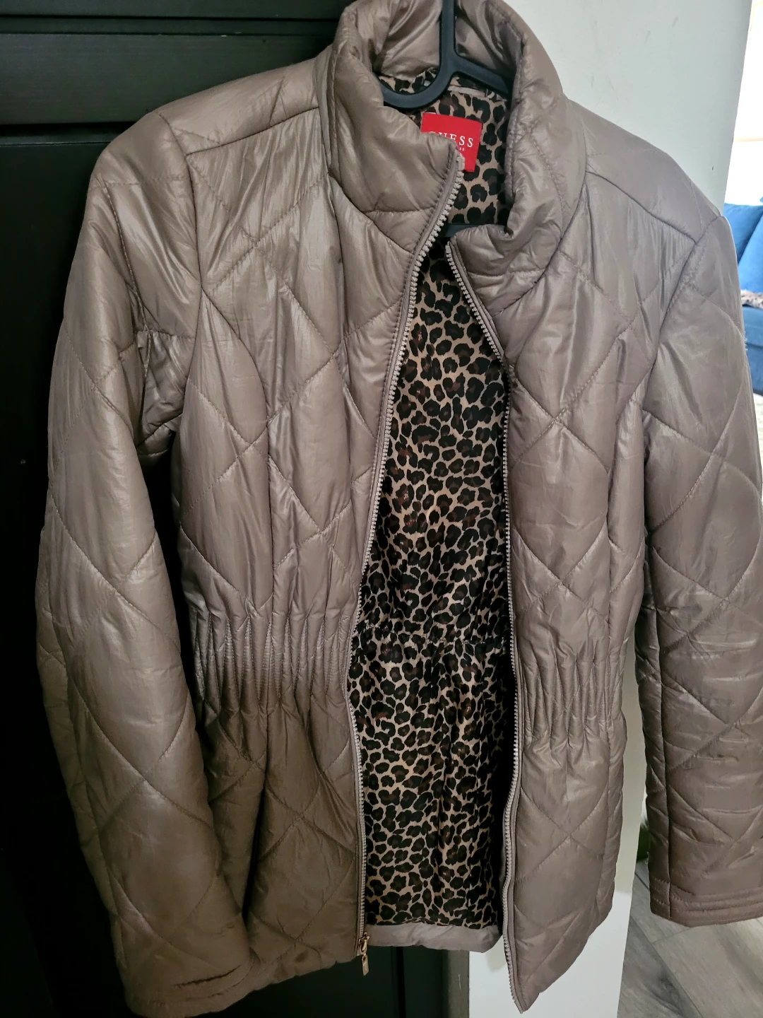 Selling a gently used Guess Los Angeles puffer jacket. It's a size small and features a stylish quilted design with a fun leopard print lining. Perfect for adding a bit of warmth and flair to your wardrobe!