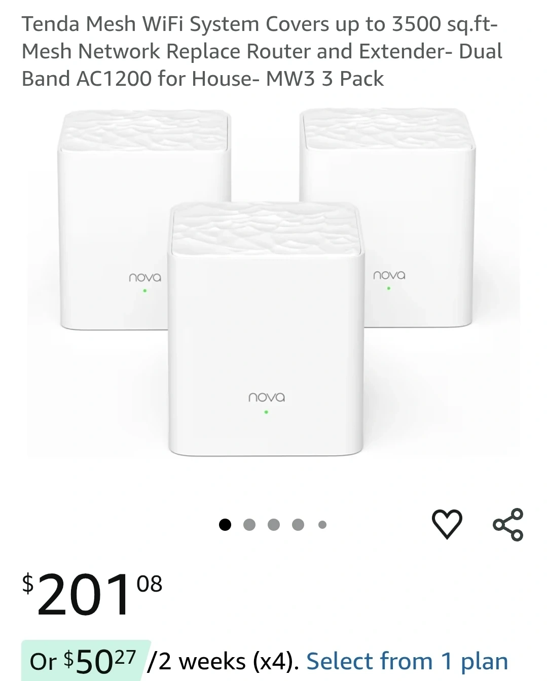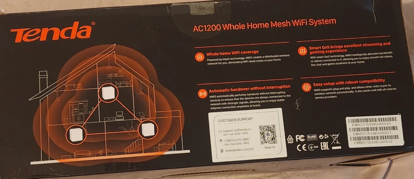 Selling a Tenda AC1200 Whole Home Mesh WiFi System (MW3 3-pack). It creates a distributed wireless network for eliminating WiFi dead zones at your home. The system provides automatic handover without interruption and easy setup with robust compatibility. Covers up to 3500 sq ft. Originally bought for $201.08