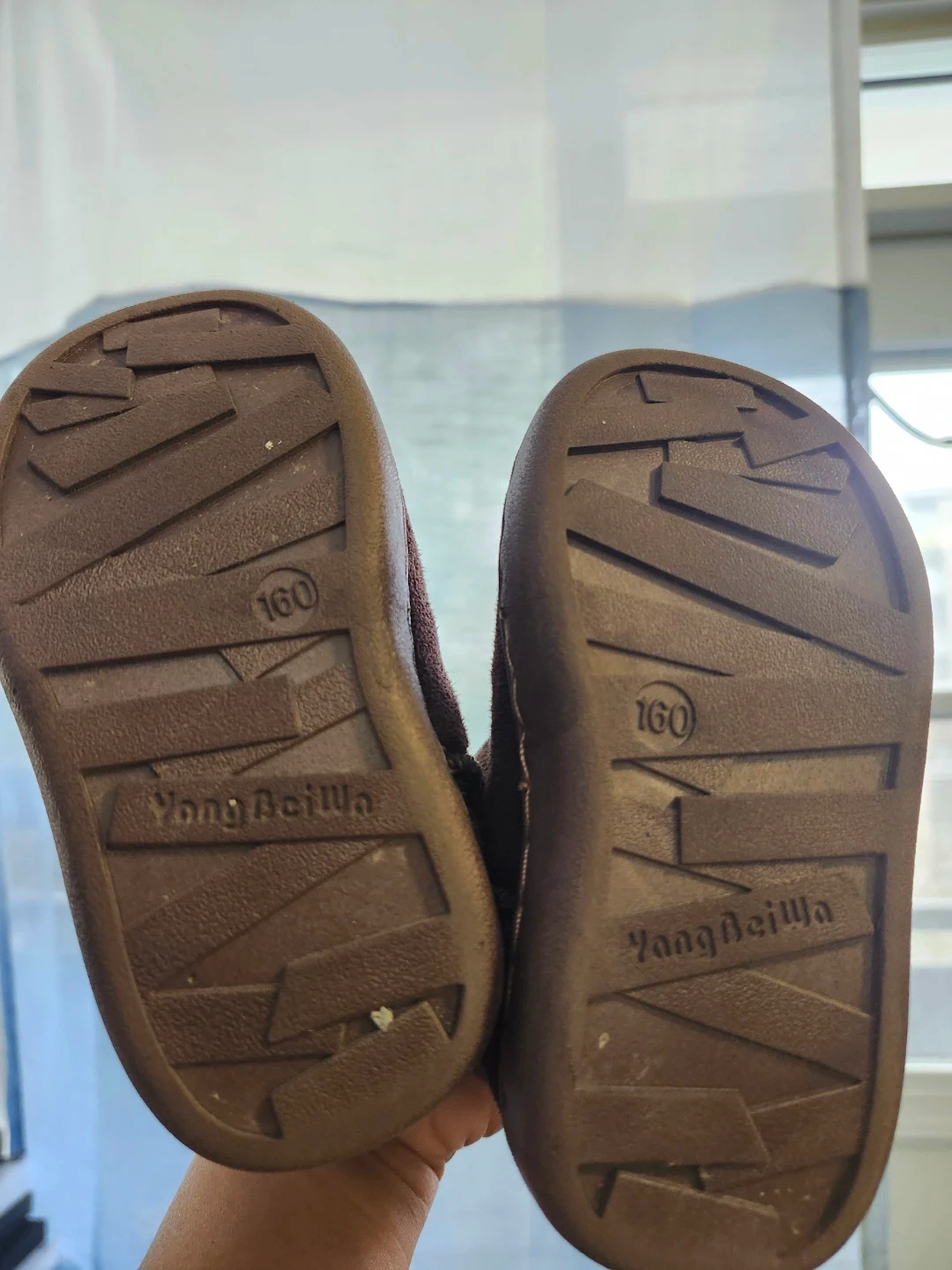 These adorable Yang Beiwa baby booties are in a lovely brown colour. They're marked as size 160 on the sole. Perfect for keeping your little one's feet warm and cozy! Just wore a rew times