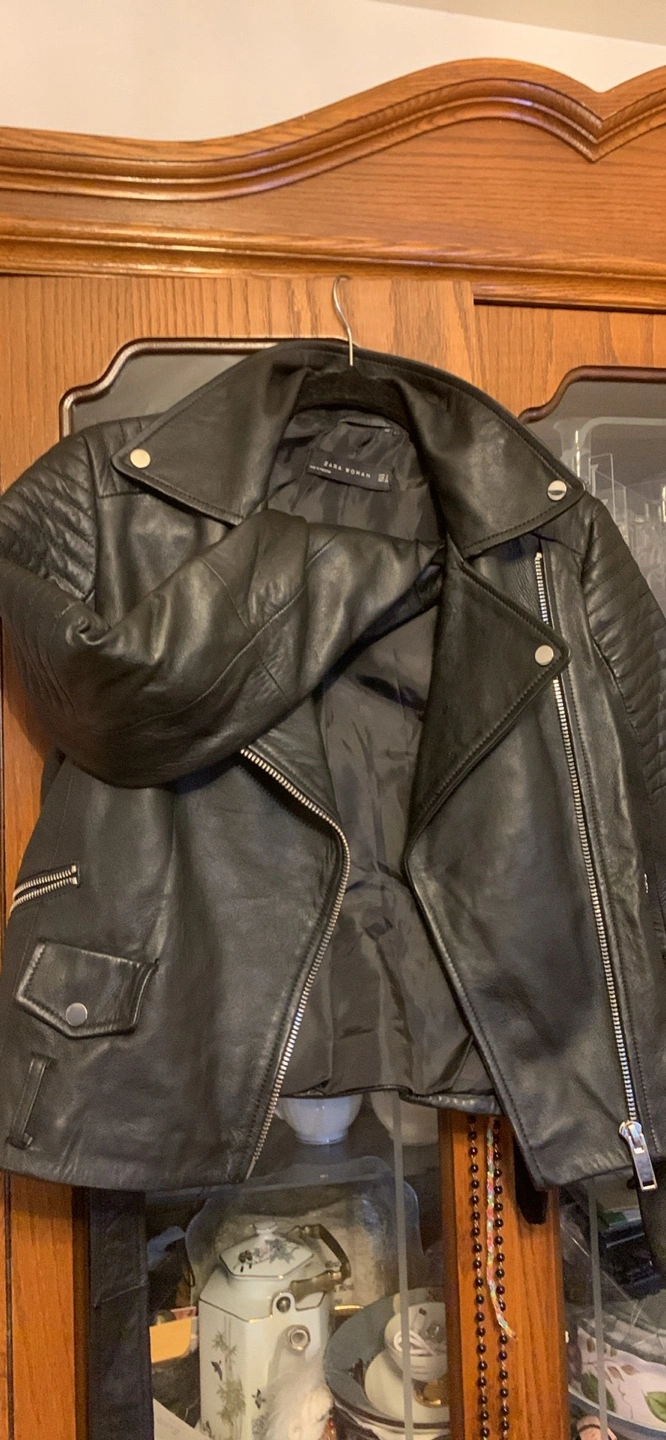 I'm selling a Zara Woman black leather jacket in size S. It's in great condition and ready for a new home. Perfect for adding a stylish edge to any outfit!