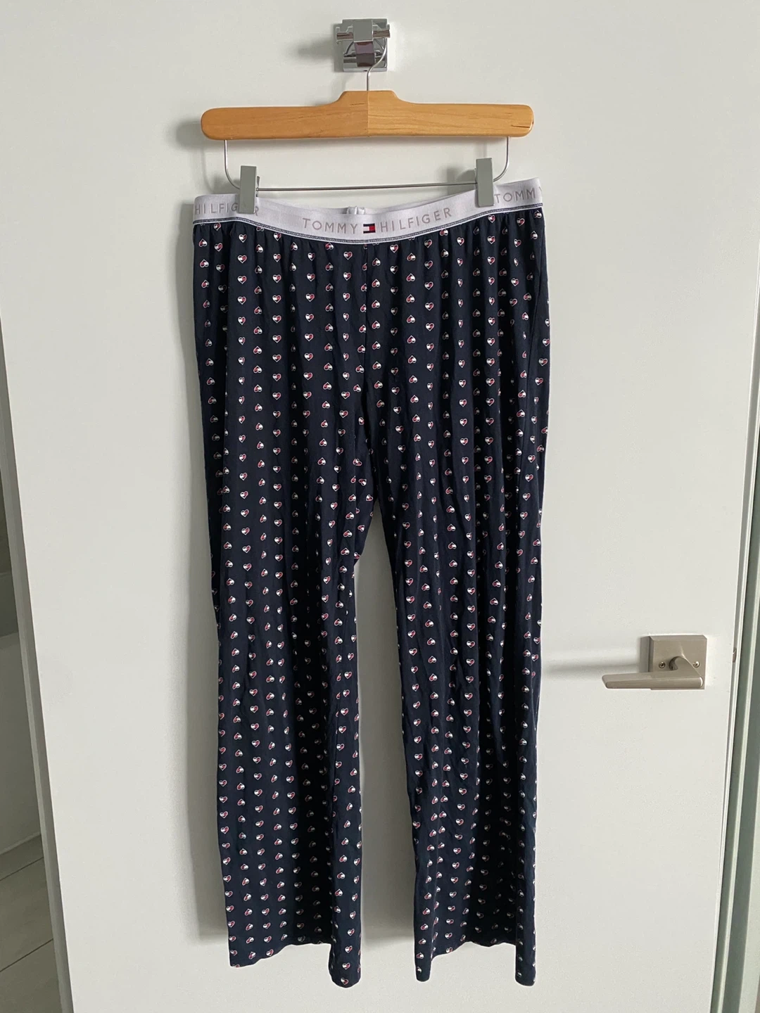 219Selling a pair of Tommy Hilfiger lounge pants. They're navy blue with a cute heart pattern. The elastic waistband features the Tommy Hilfiger logo. Size Medium ❤️ Check out my other listings for great deals!