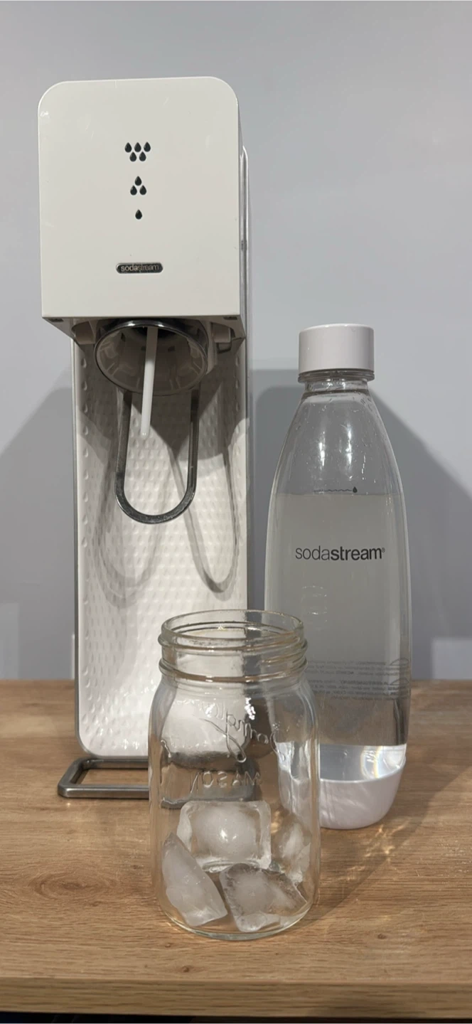 Make your own sparkling water at home and save money with this SodaStream Jet Sparkling Water Maker. Everything works perfectly and is ready to use — just add water!