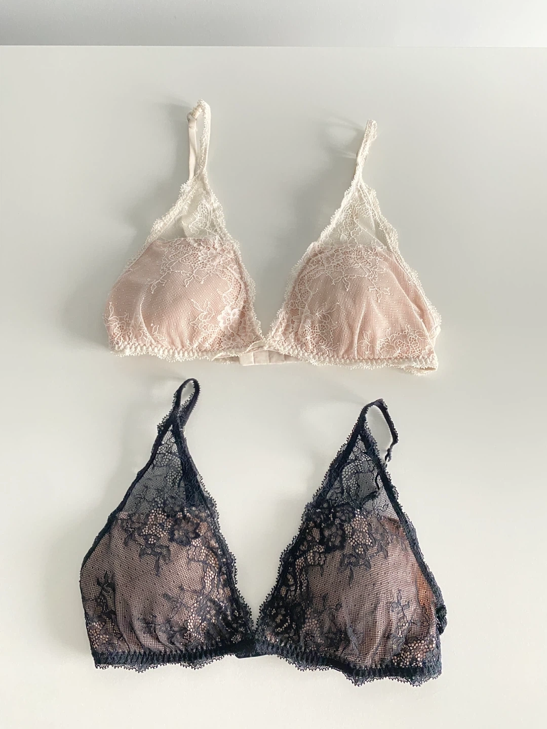 Selling a cute set of 2 Abercrombie & Fitch lace bras. It features a delicate lace design, adjustable straps and removable pads option.