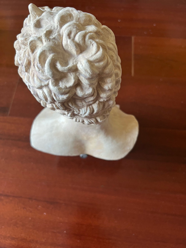 This vintage 'Youth of Marathon 330 B.C.' bust is a unique decorative piece that brings a touch of ancient history to any space. If you're a lover of classical art or looking for a distinctive ornament, this piece is perfect. The plaster piece measures 5”w x 5”d x10”h It was purchased in Greece. If you see this ad, the bust is still available!