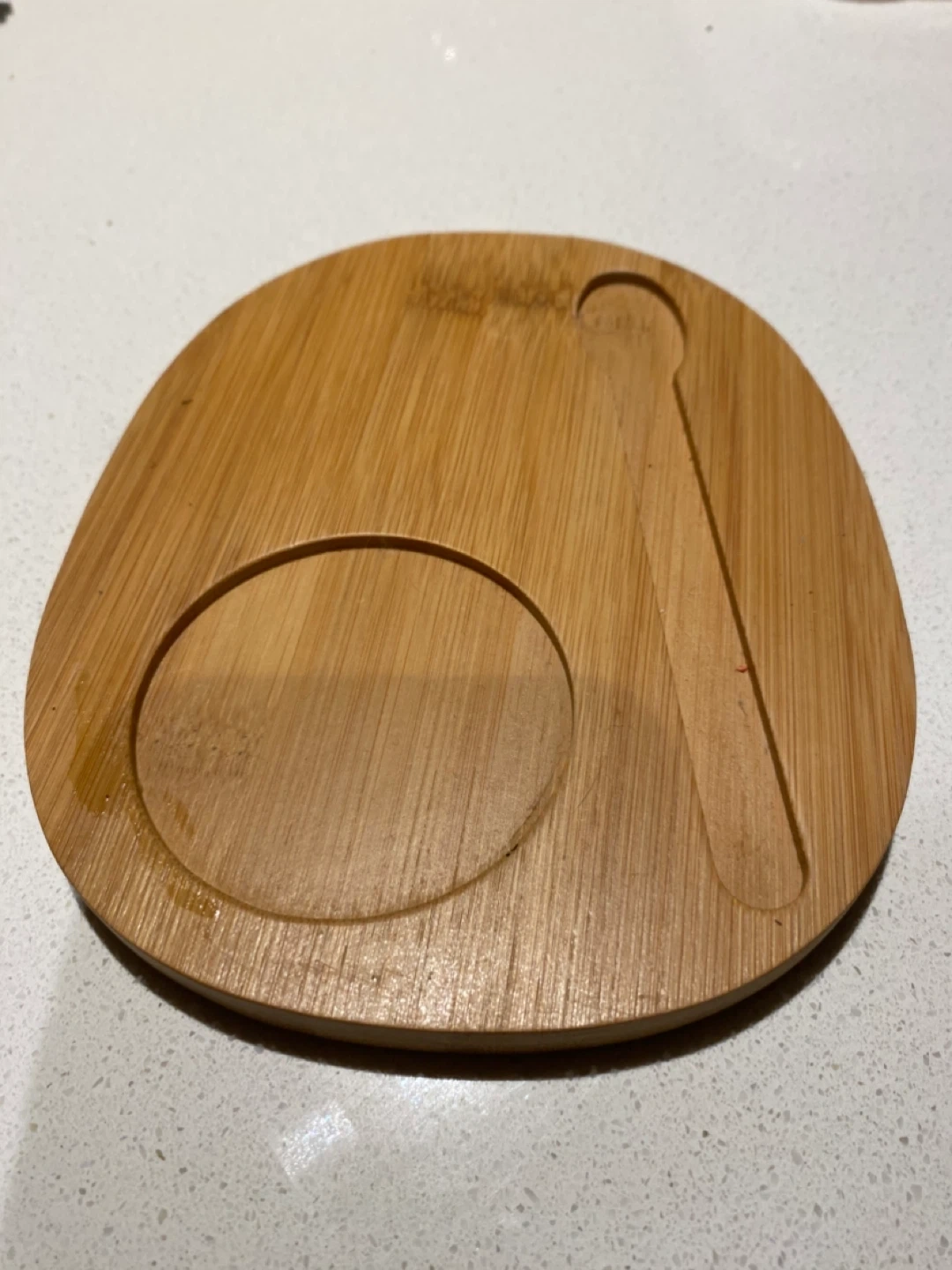 Selling a cute wooden tea tray! It's in good condition and perfect for holding your tea cup and spoon. It's a lovely addition to any tea set