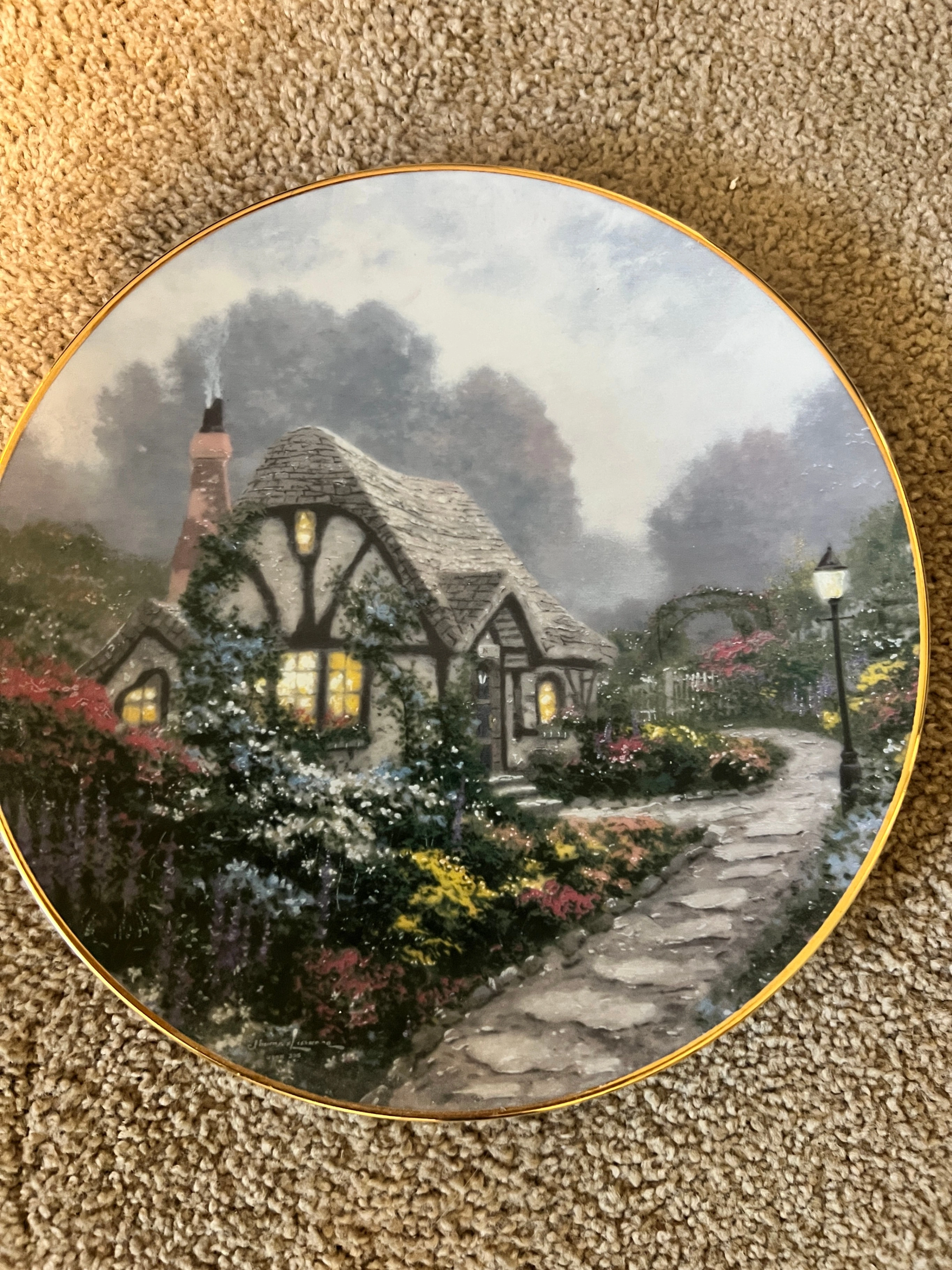 85A beautiful scene painted by artist Thomas Kinkade called "Chandler's Cottage". It's the first issue in the Garden Cottages of England collection. This is a limited edition from Knowles China and dated 1991. Numbered and signed. It's 8 1/2" wide. LOCATION for pickup: area of David & Johnson up the hill from Coquitlam Centre.