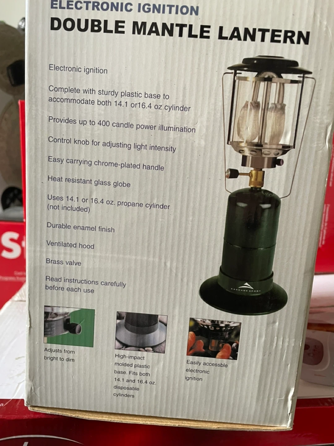Cascade Sport Double Mantle Lantern & Coleman Queen Air Mattress