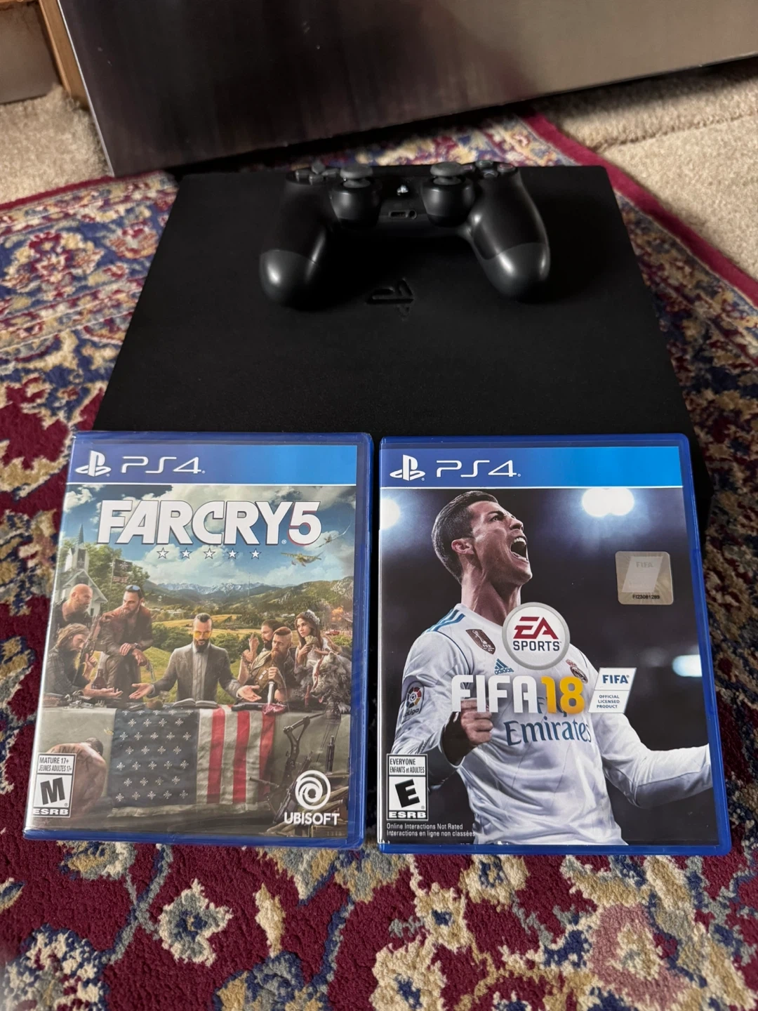 20Selling PS4 Pro in very good condition since we barely used it. Cones with controller and 2 games where one has never been opened