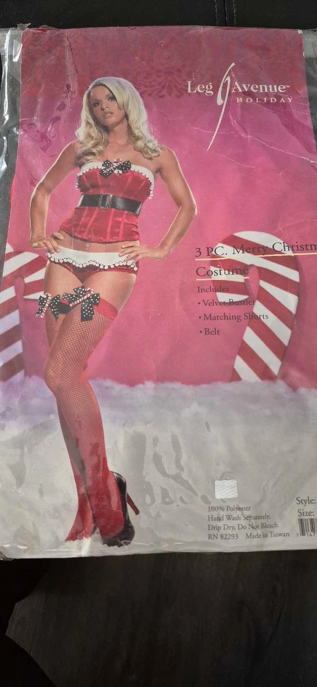 Get ready to spread some holiday cheer with this Leg Avenue 3-piece Merry Christmas Costume in size large! This festive costume includes a velvet bustier, matching shorts, and a belt, perfect for adding a touch of fun to your holiday celebrations. This item is new in the original packaging.